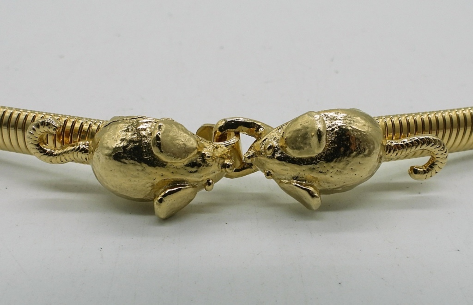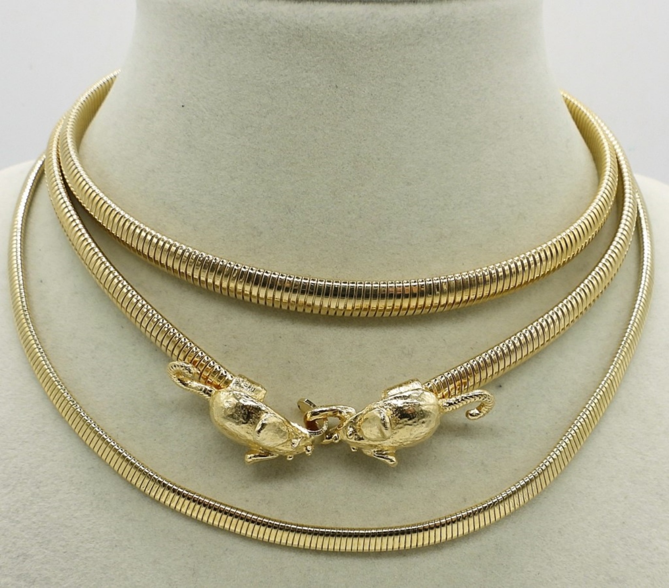 Two Gold Tone Necklaces, 26″ Mouse Necklace. 16″ Gold Tone Chain.
