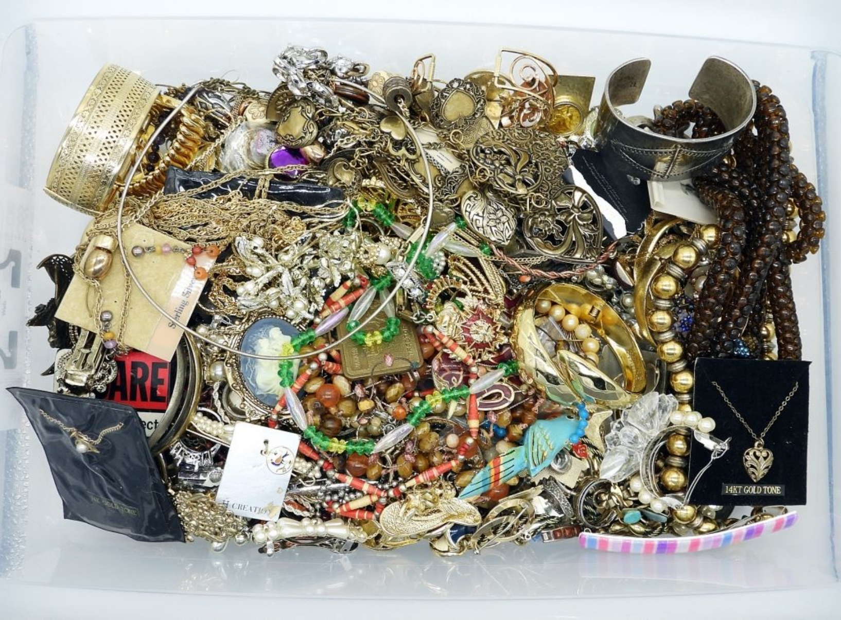 ONE GALLON BAG FULL OF A GREAT MIX OF COSTUME JEWELRY! RINGS, BRACELETS, NECKLACES, BRACELETS & MORE!