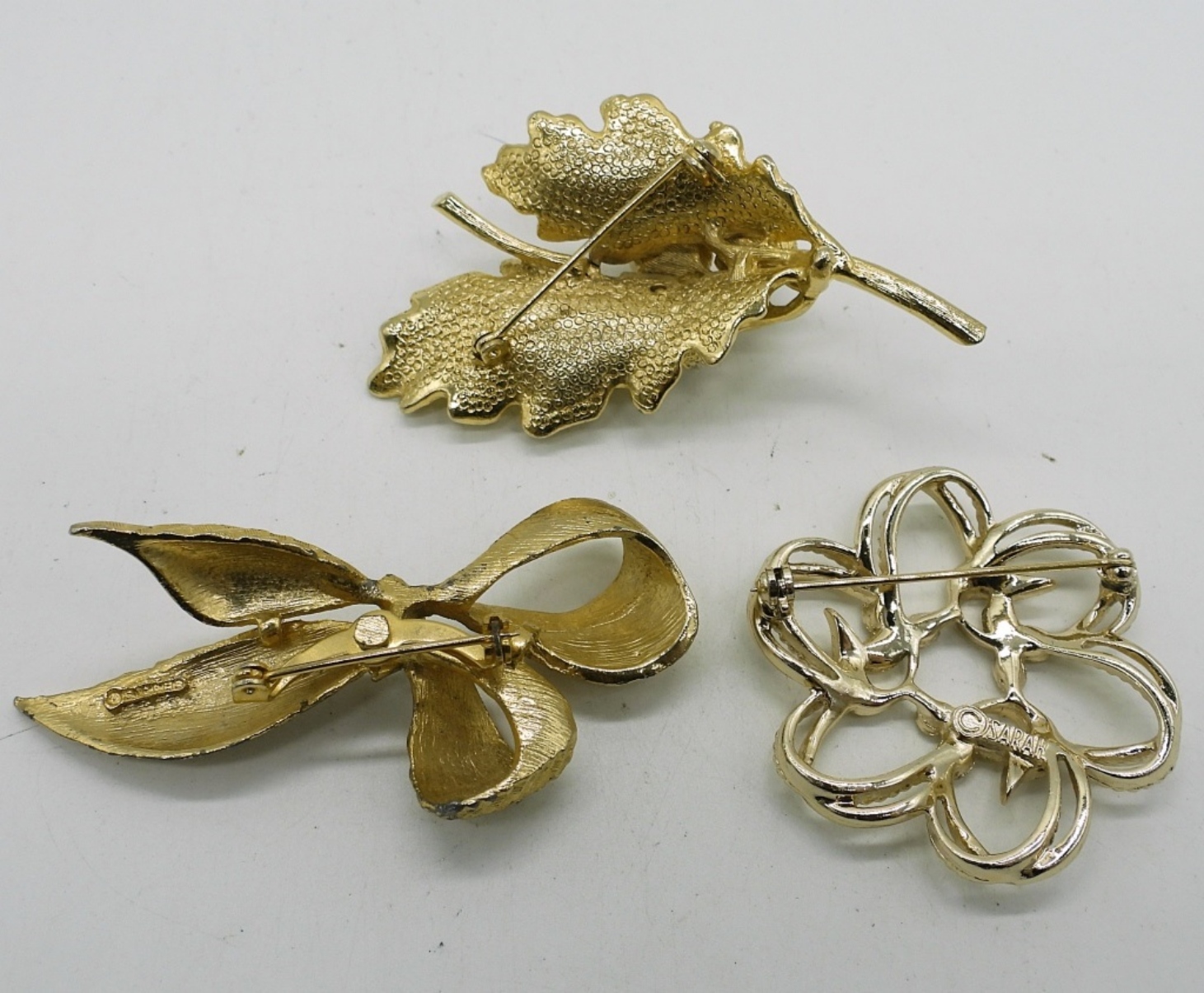Three Vintage Gold Tone Brooches. One is SARAH COVENTRY.