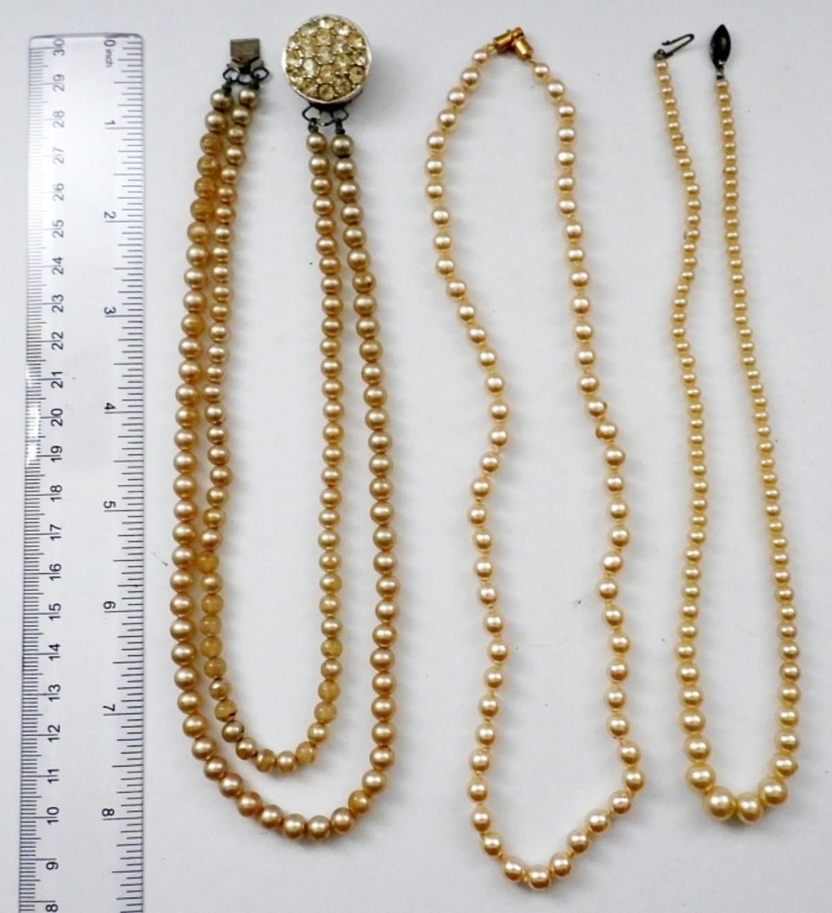15″, 16″, & 18″ FAUX IVORY PEARL VINTAGE NECKLACES