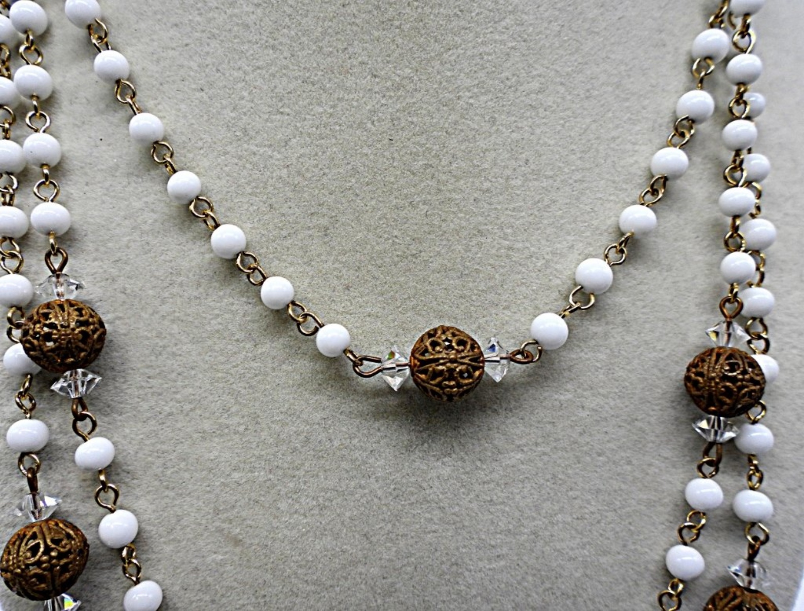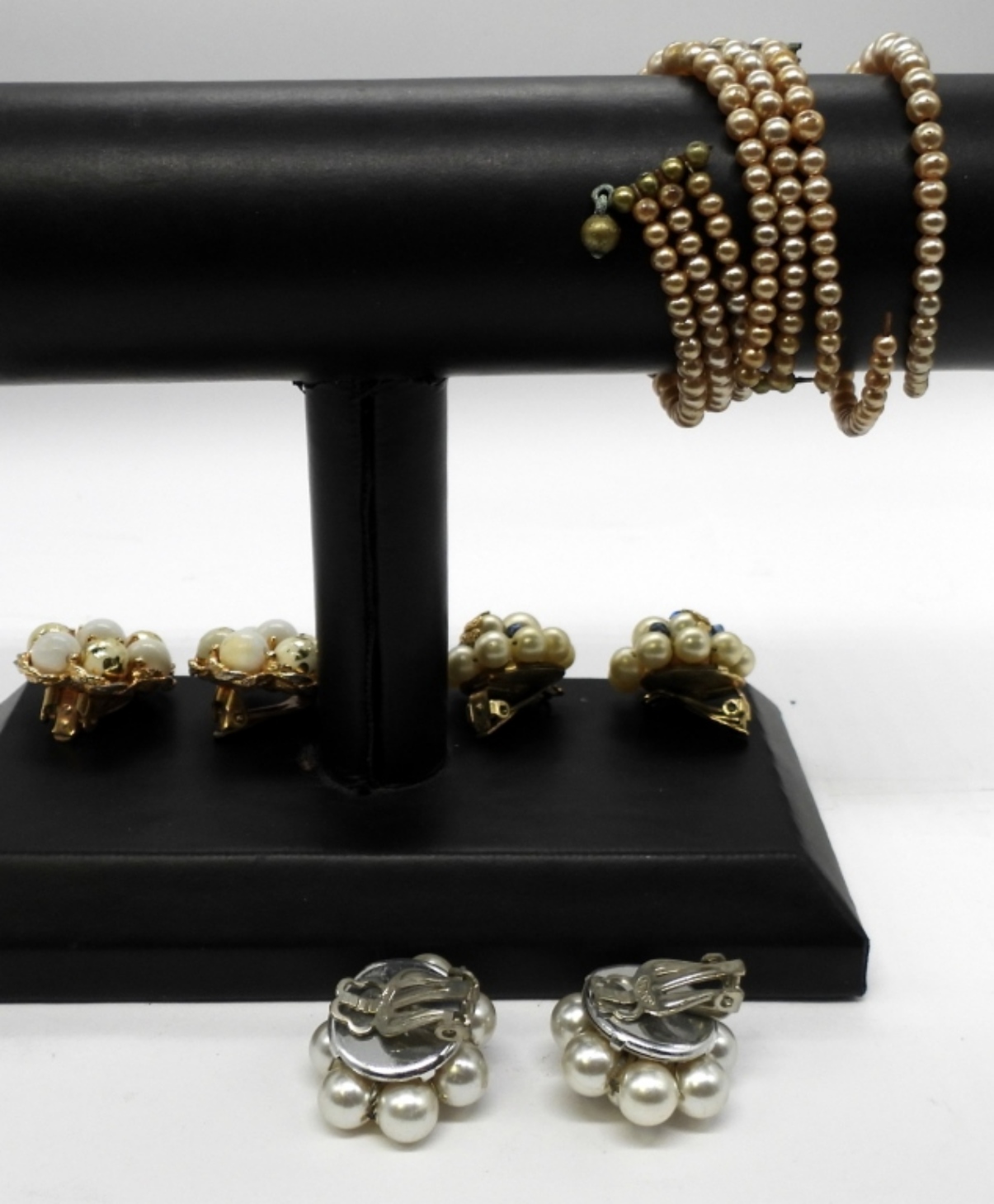 58″ NECKLACE (3) SETS OF CLIP ON EARINGS VINTAGE BROKEN BRACLET