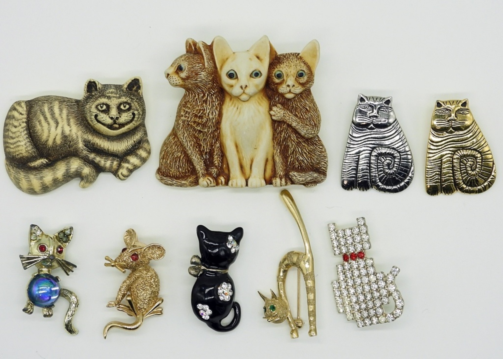 NINE CUTE CAT PINS, LARGEST MEASURES 2.5″x2″.