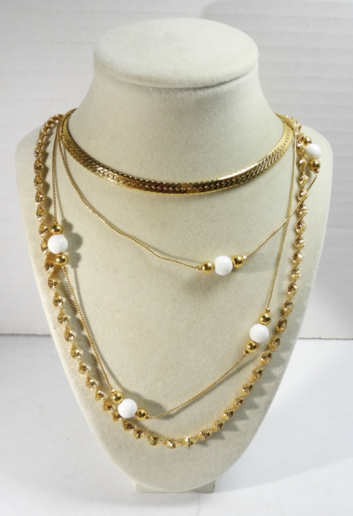 THREE GOLD TONE NAPIER NECKLACES, BEAUTIFUL! 23″, 24″ & 36″.