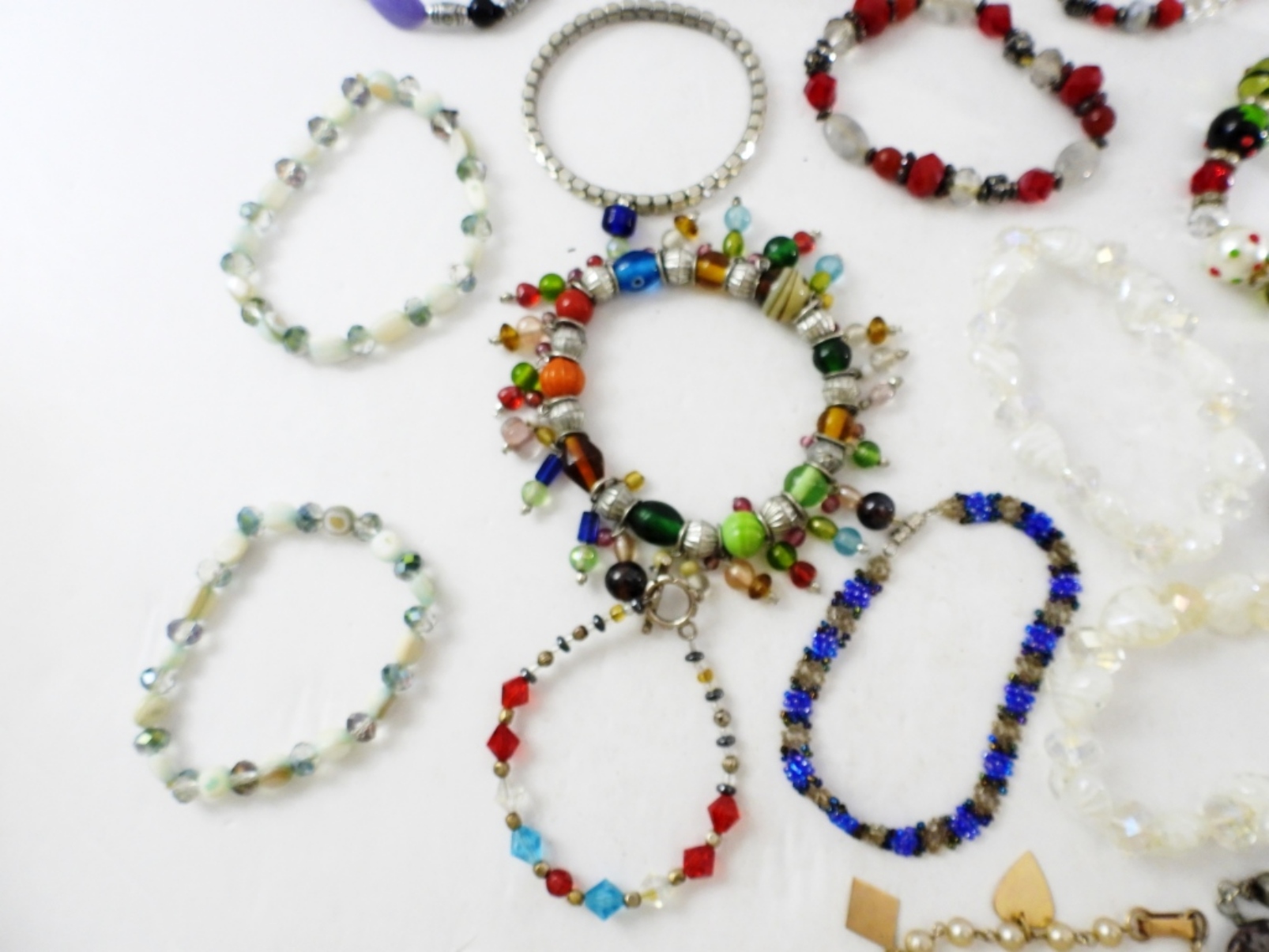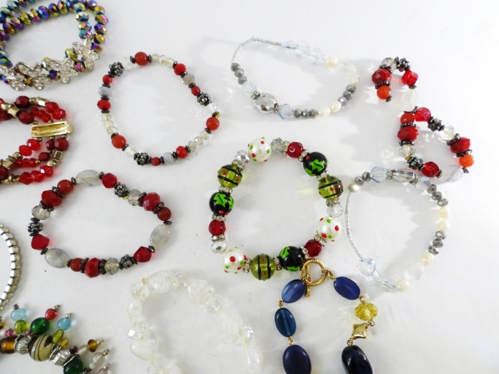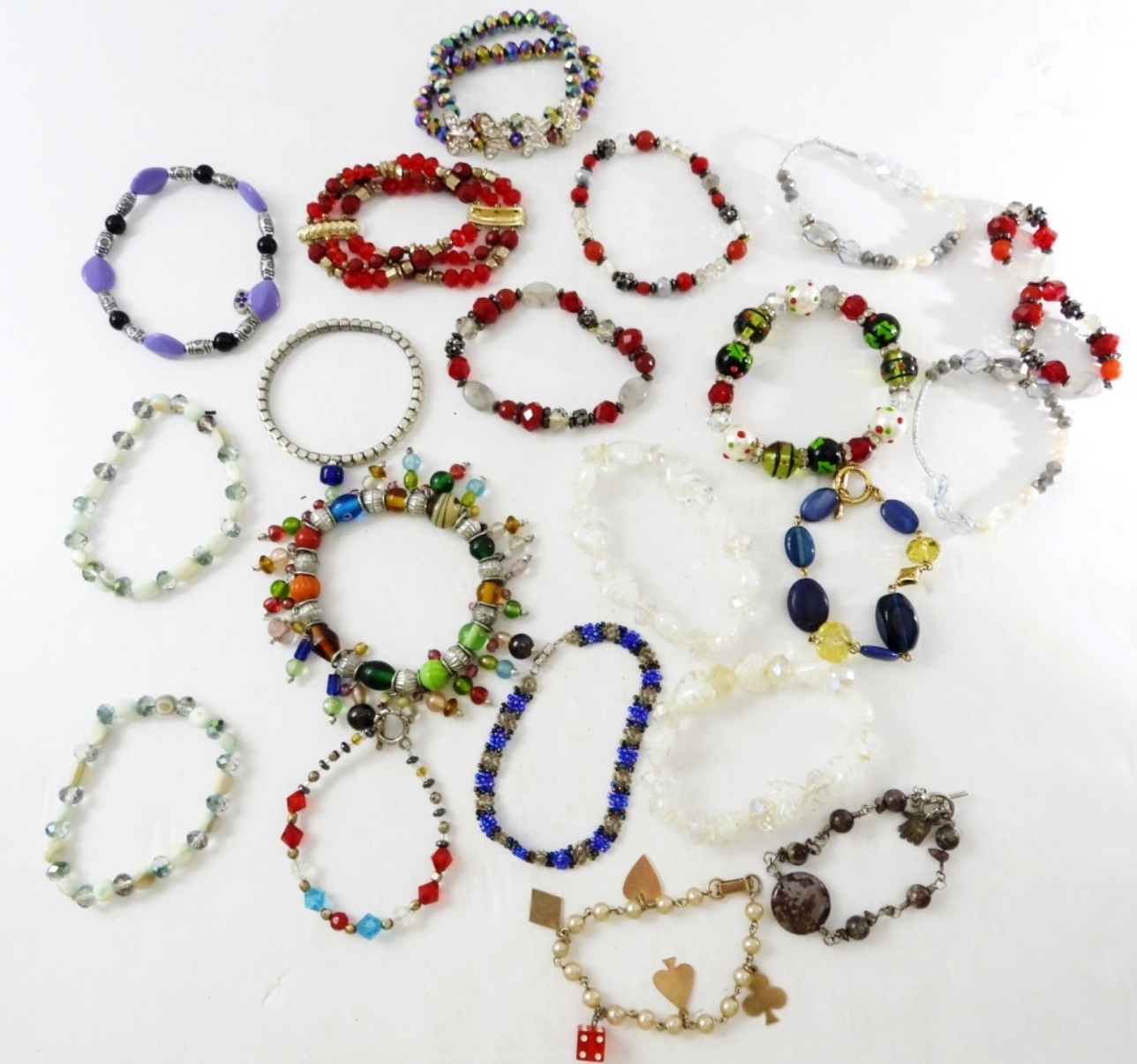TWENTY BEADED STRETCHY BRACELETS. ALL COLORS.