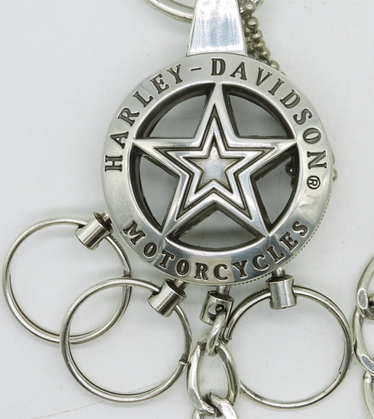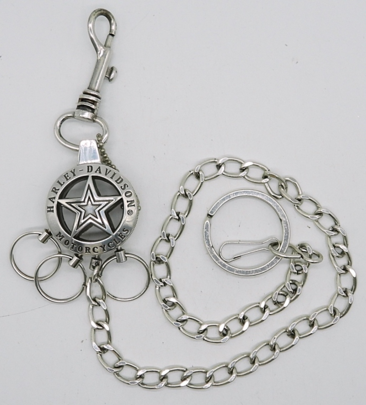 HARLEY DAVIDSON, BIG SILVER TONE KEYCHAIN WITH CHAIN 17.5″.