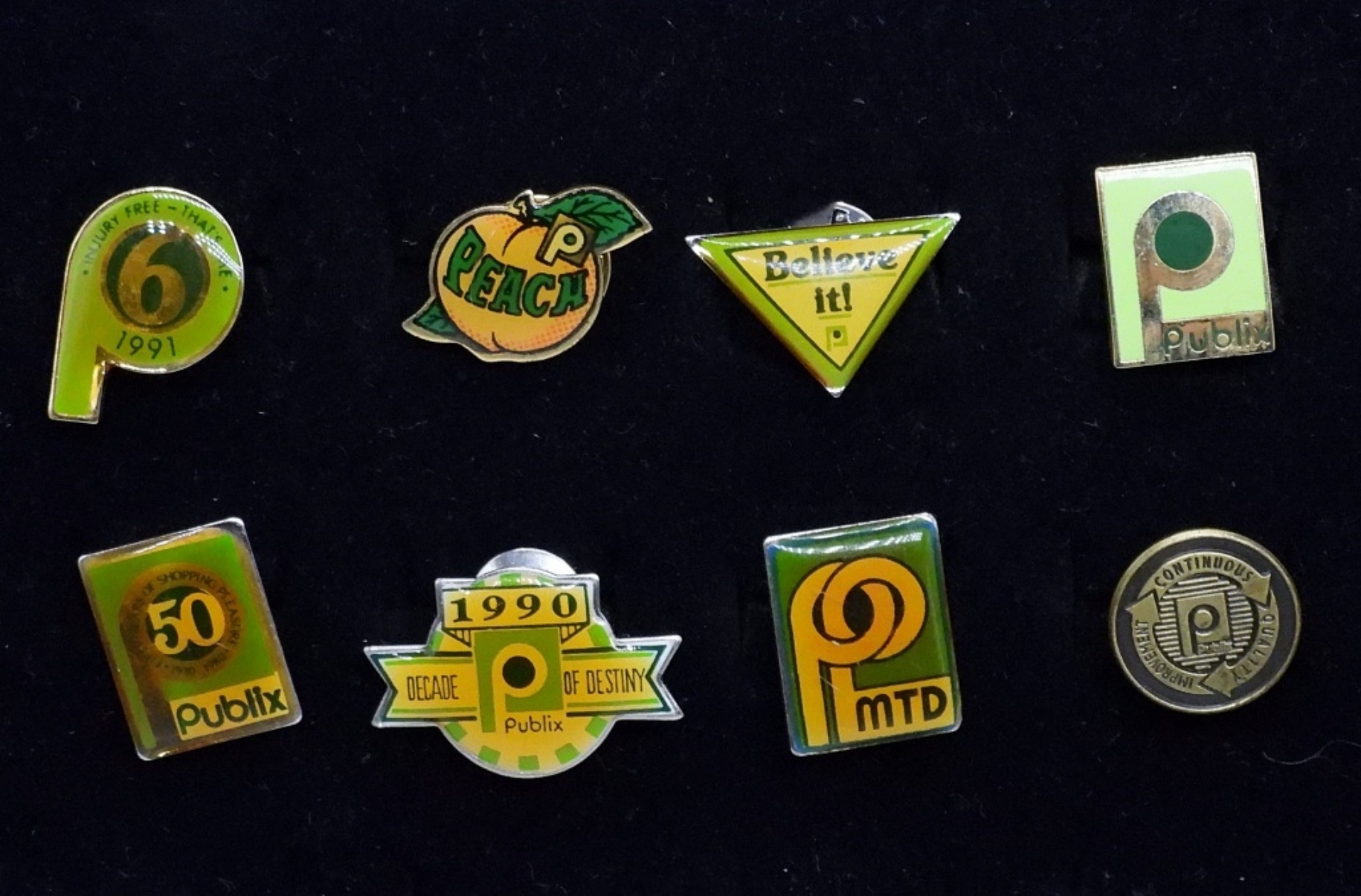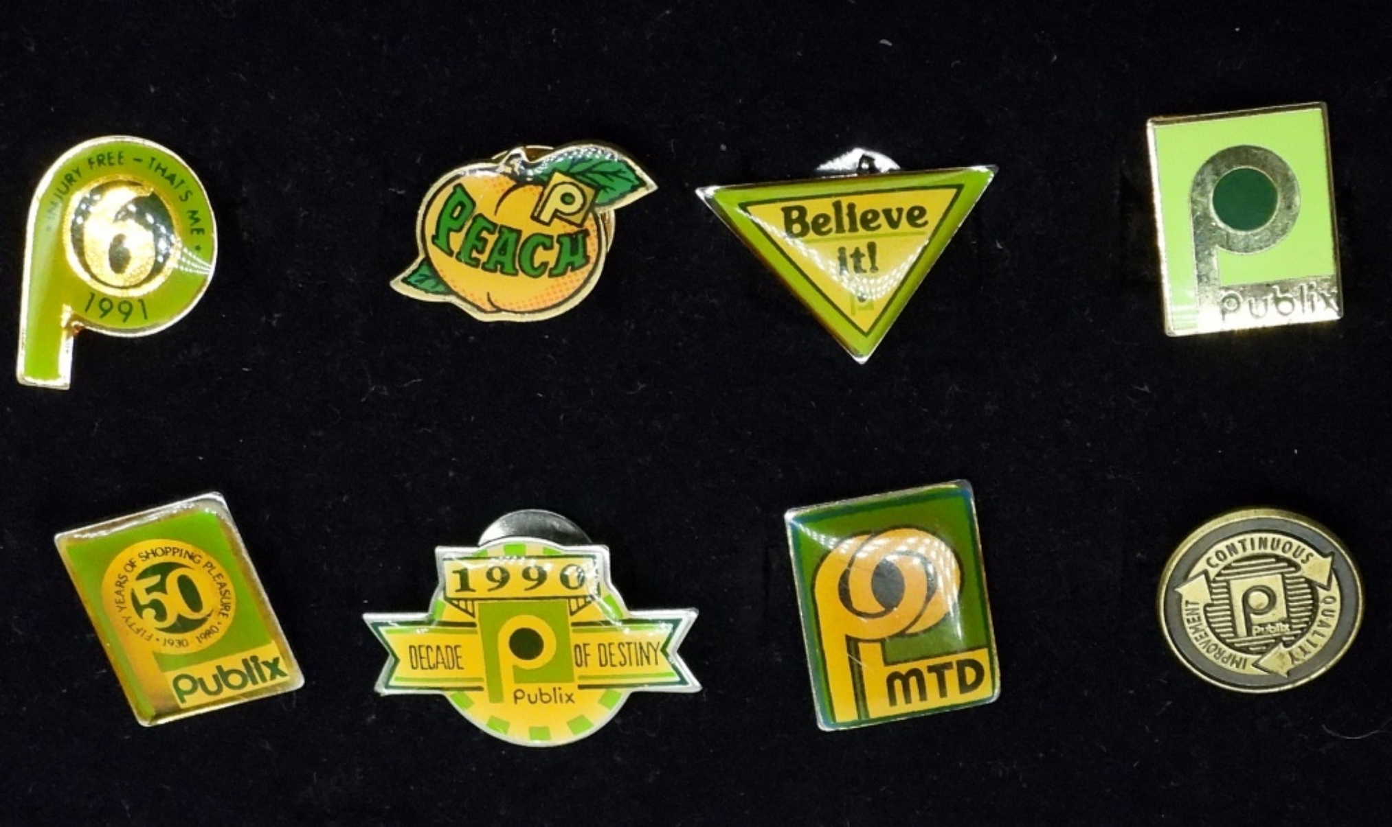 EIGHT VINTAGE PUBLIX PINS. SEE PHOTOS