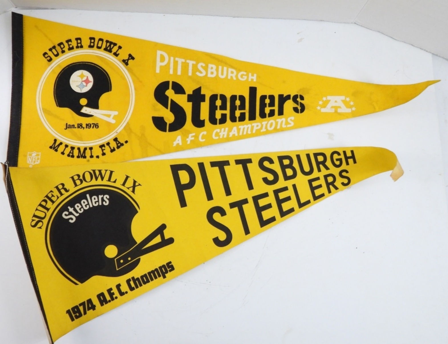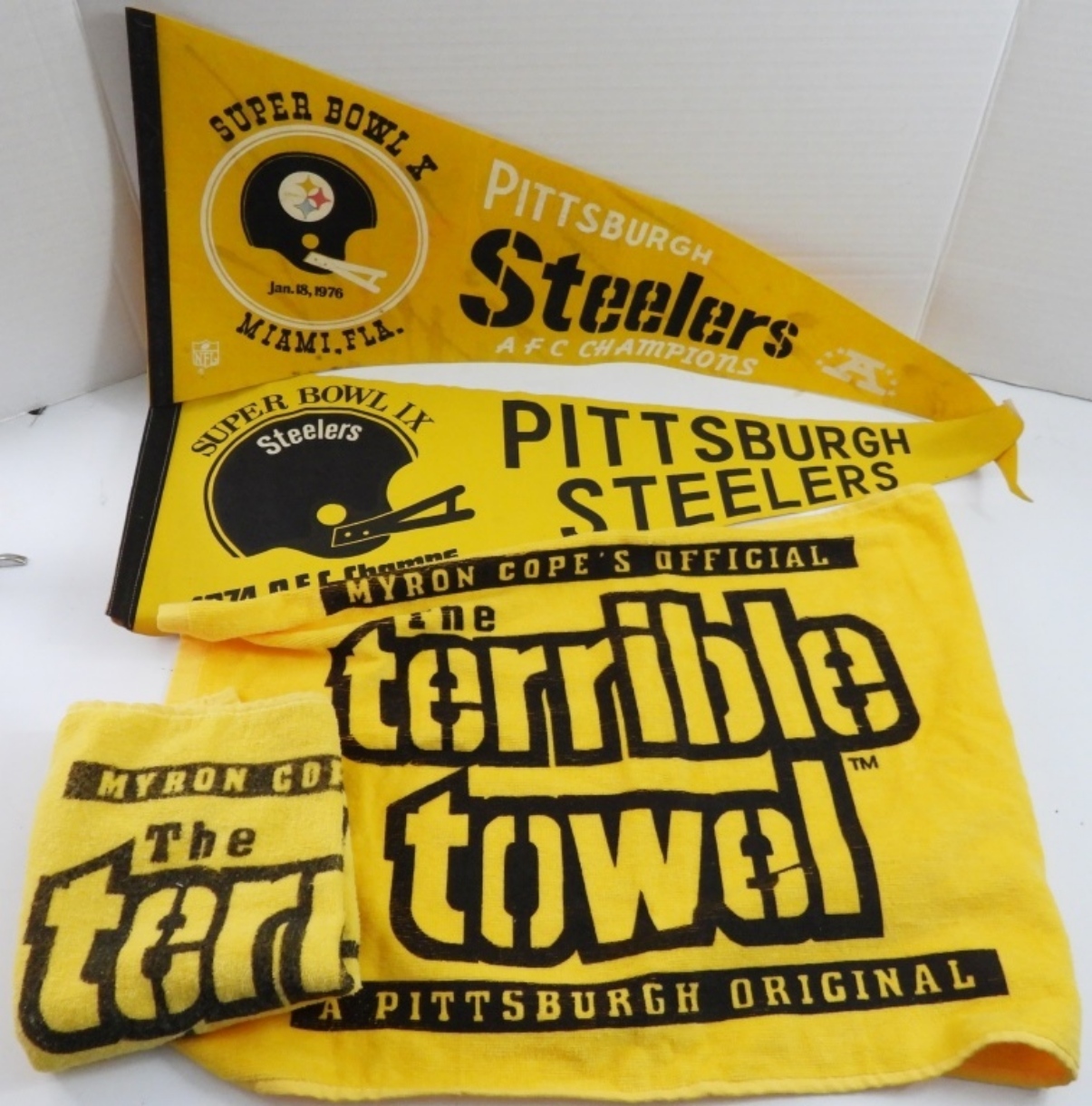 (2) PENNANTS 1976 SUPER BOWL X & 1974 AFC CHAMPS plus (2) TERRIBLE TOWELS
