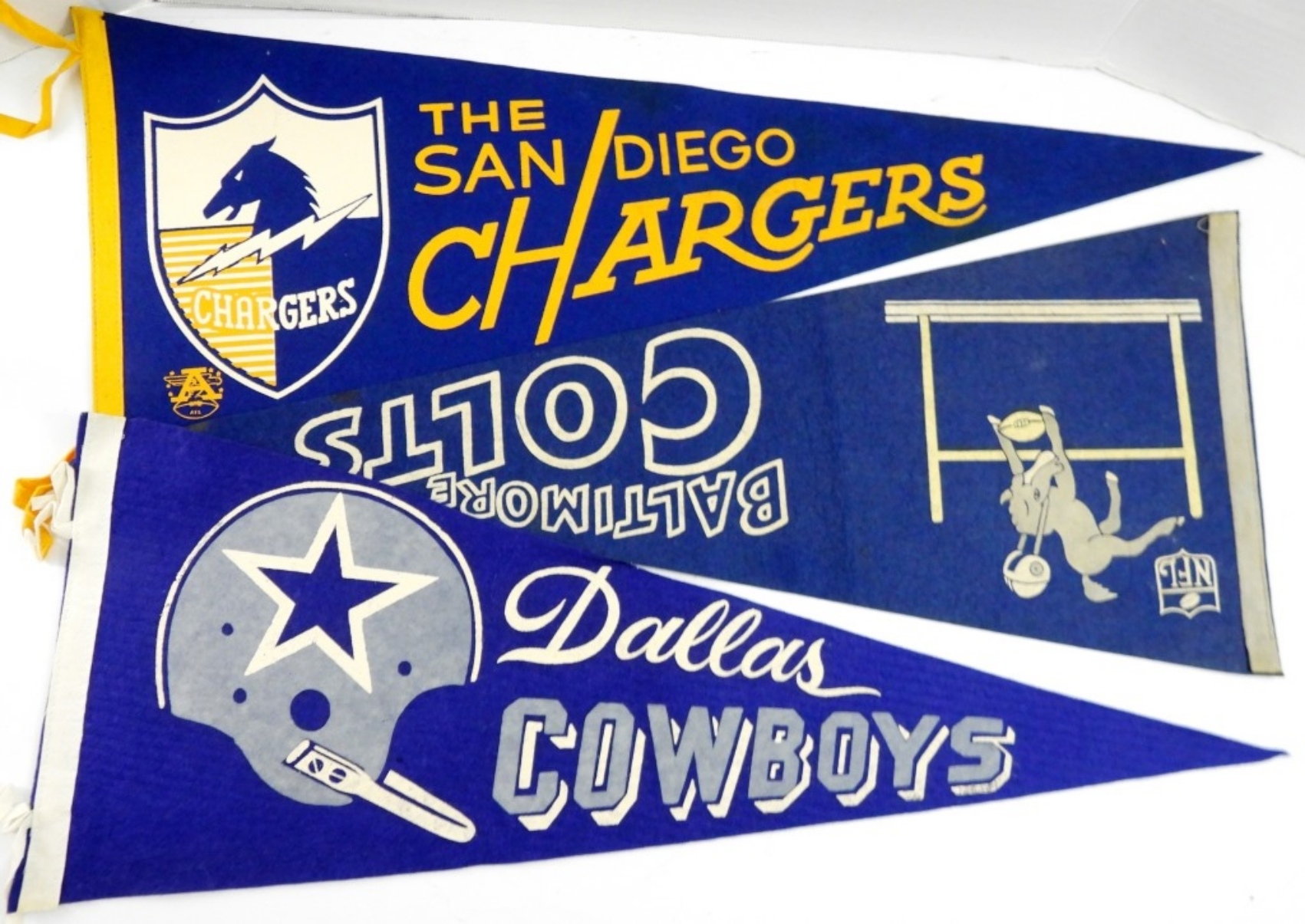 OVERALL NICE CONDITION – EAGLES, RAMS, REDSKINS, CHIEFS, BROWNS, VIKINGS, STEELERS, (2) COLTS, DOLPHINS, COWBOYS, CHARGERS – 30″ LONG