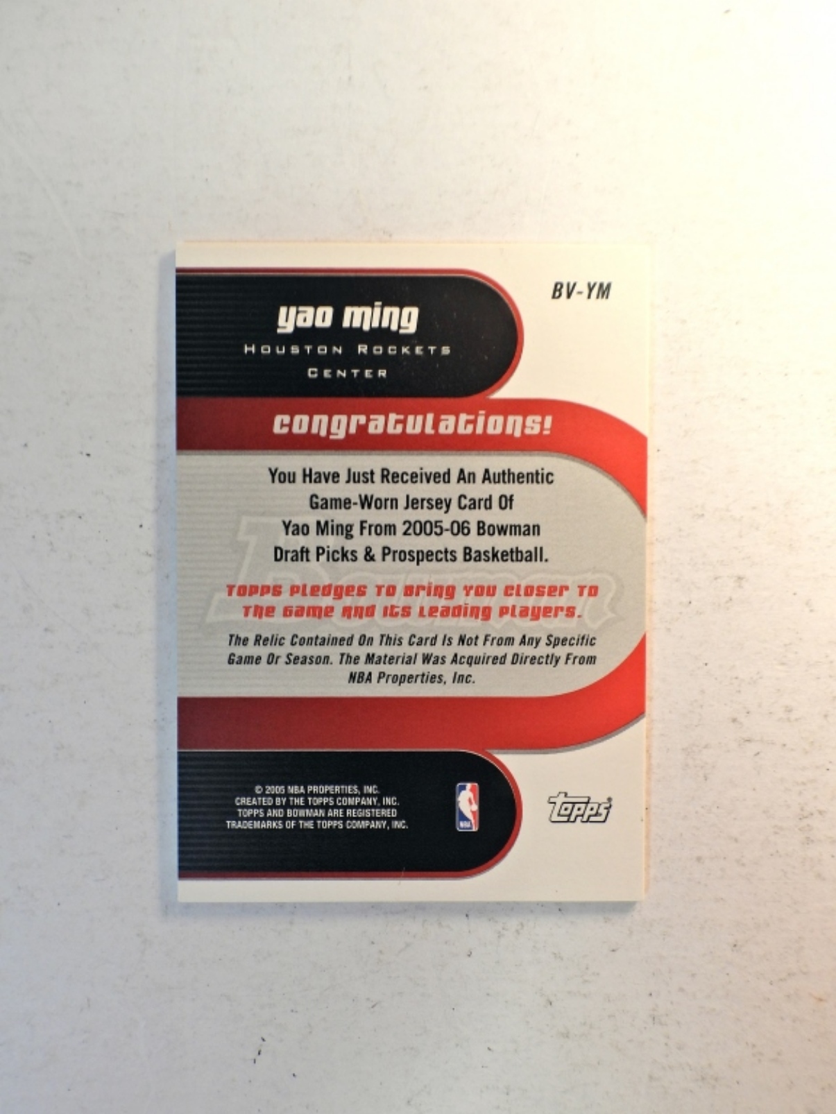 TOPPS BRAVO! YAO MING RED JERSEY PATCH CARD. 2005