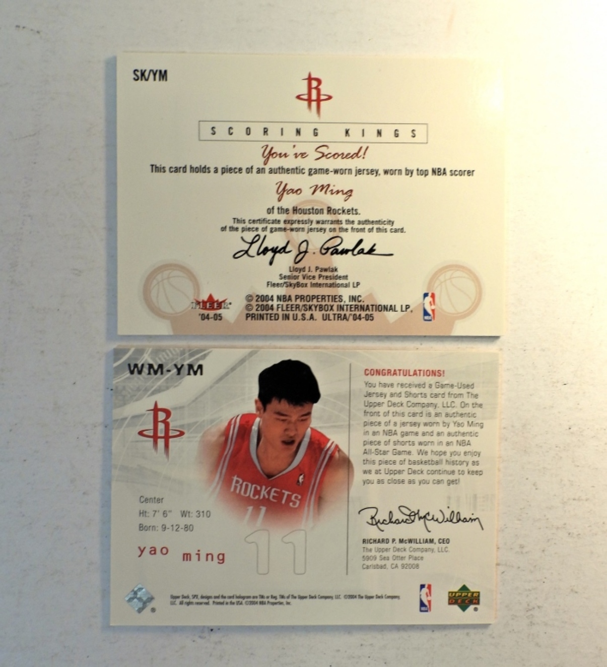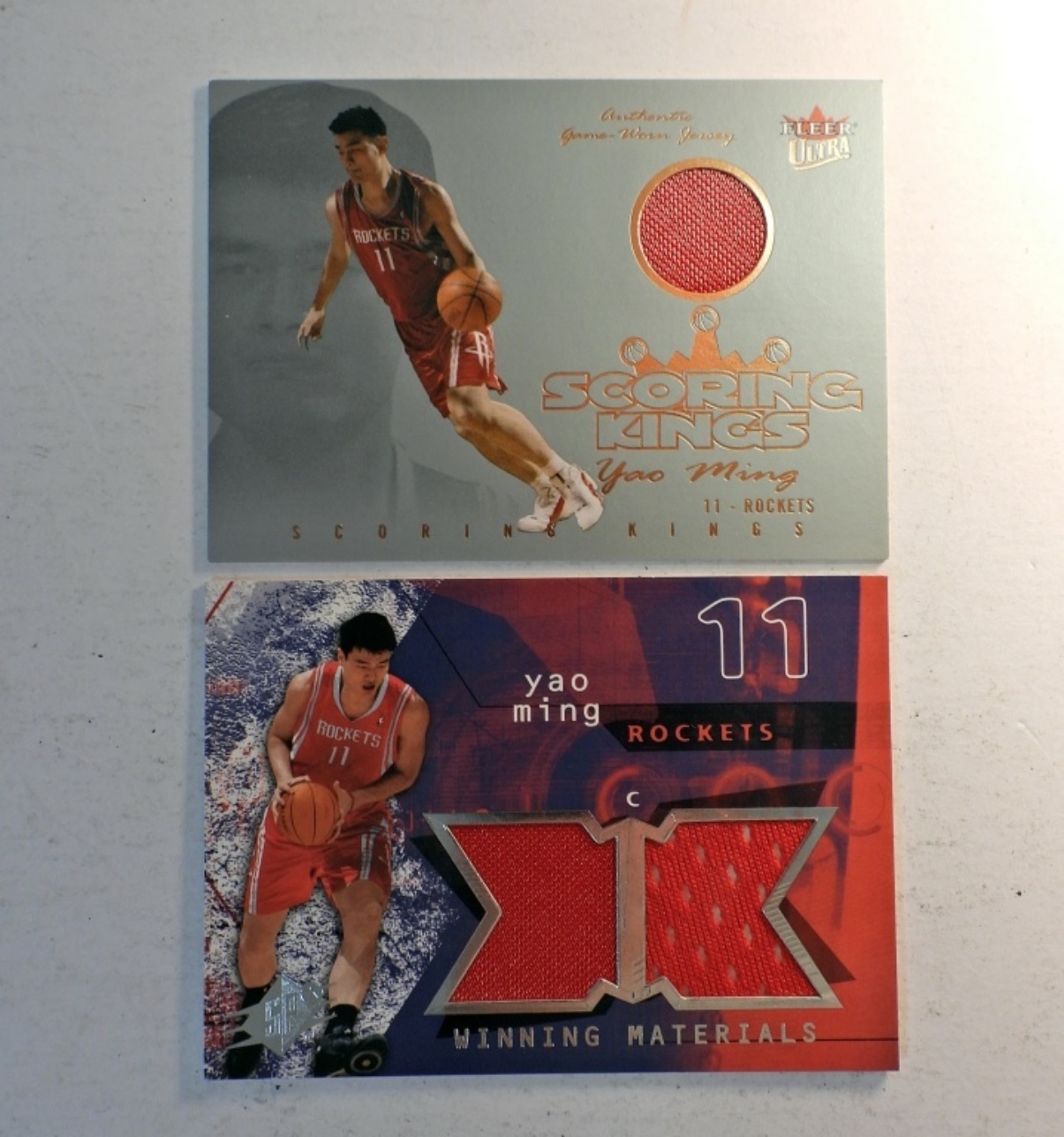 TWO YAO MING JERSEY PATCH CARDS. FLEER 2004. UPPER DECK 2004.