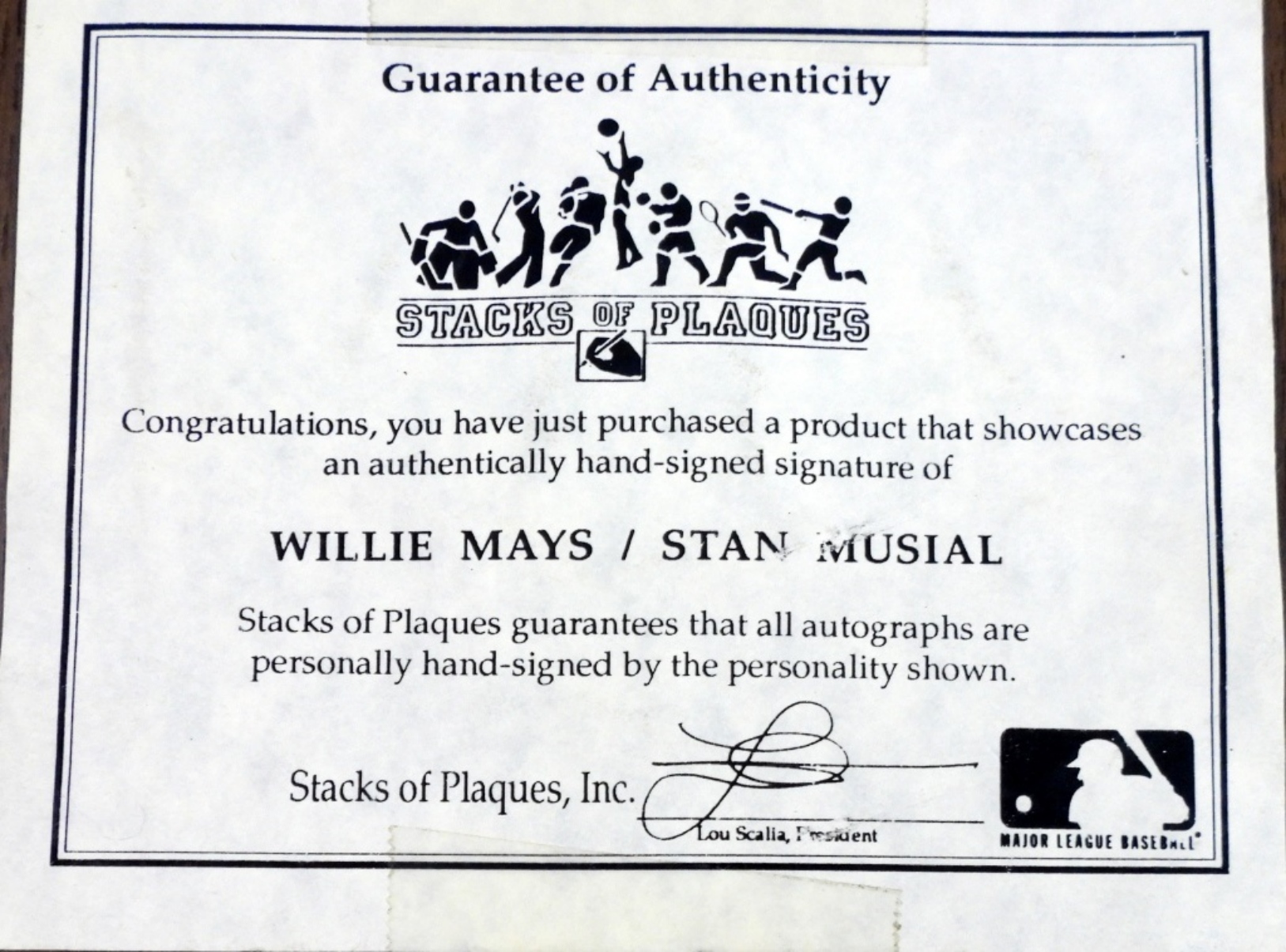 WILLIE MAYS AND STAN MUSIAL IN GOOD CONDITION. COMES WITH STACKS OF PLAQUE COA