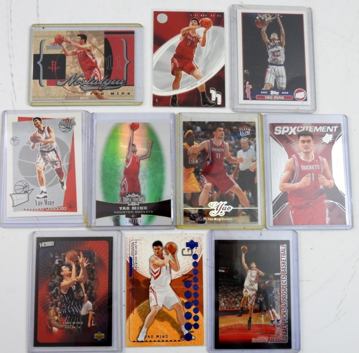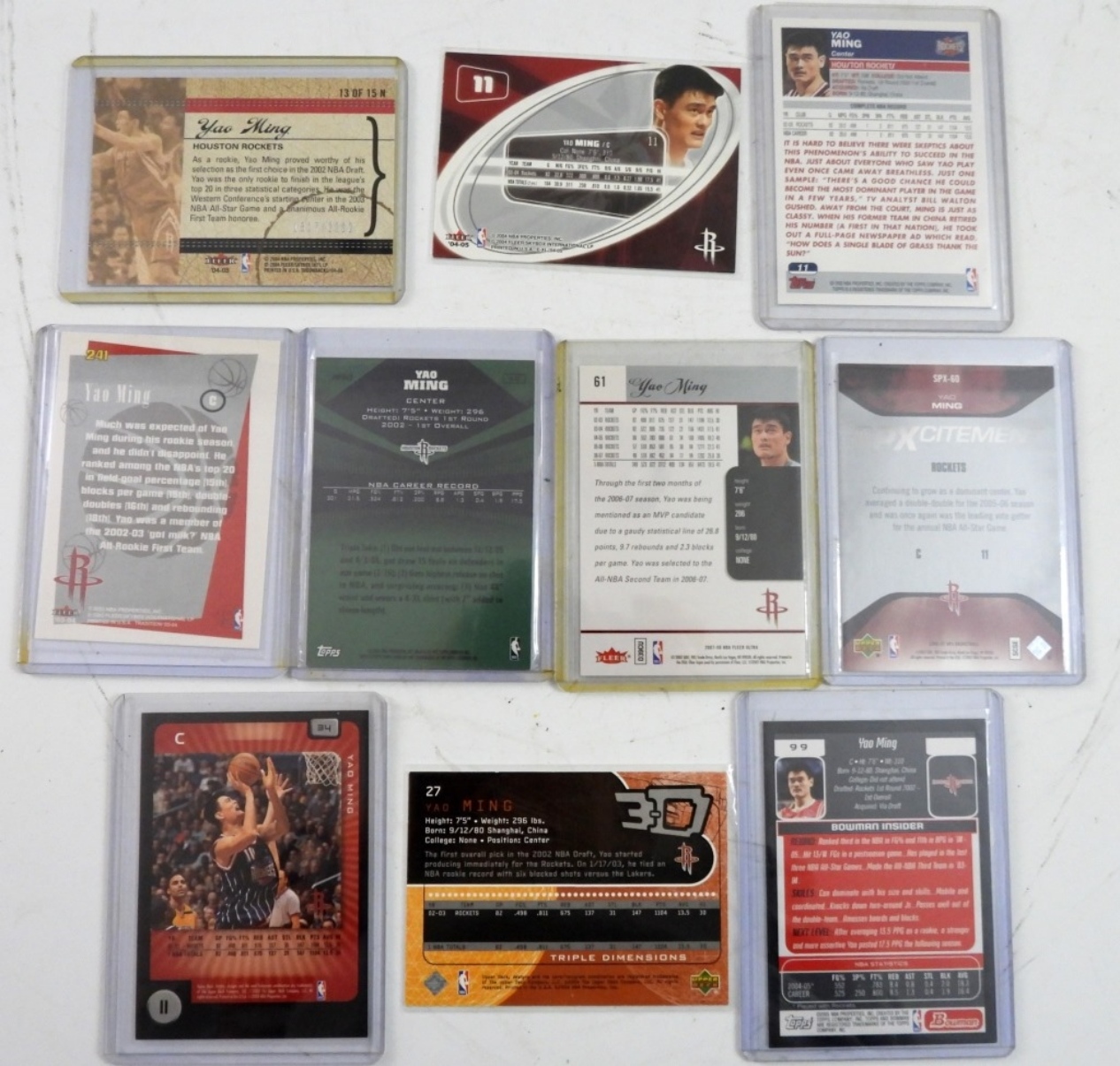 (10) PREMIUM YAO MING COLLECTOR CARDS, VARIOUS YEARS, TOPPS, FLEER & MORE. NICE CONDITION