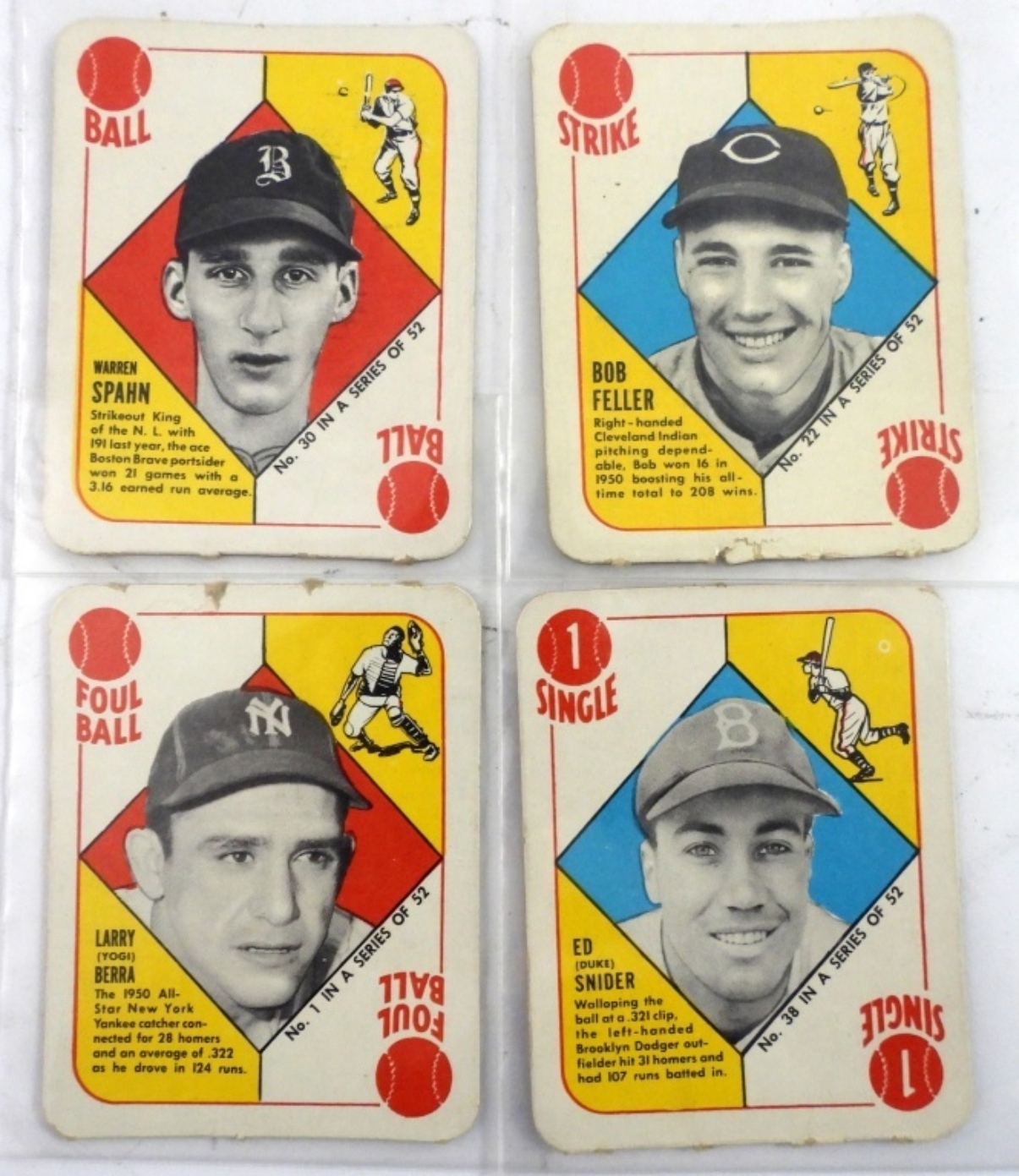 INCLUDES SOME STARS (FELLER, SNIDER, SPAHN, BERRA) – NICE OVERALL EX+ with (9) LESSER VG/GOOD