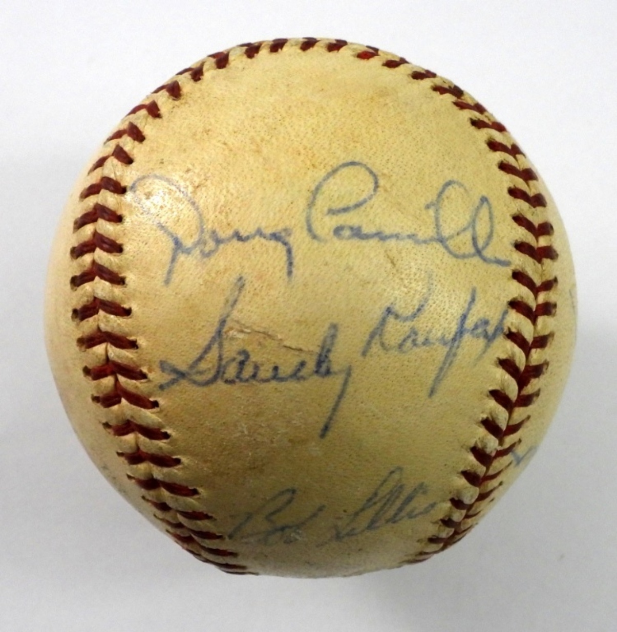 (8) SIGNAUTRES – SANDY KOUFAX, LARRY SHERRY, JOHNNY PODRES, BOB ASPROMONTE, BOB LILLIS, DOUG CAMILLI, WALT ALSTON on sweet spot & (1) unidentified – NO COA