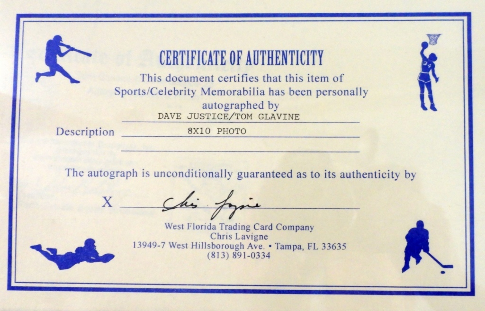 DAVE JUSTICE NORTH ORLANDO SPORTS PROMOTIONS AND WEST FLORIDA TRADING CARD COMPANY