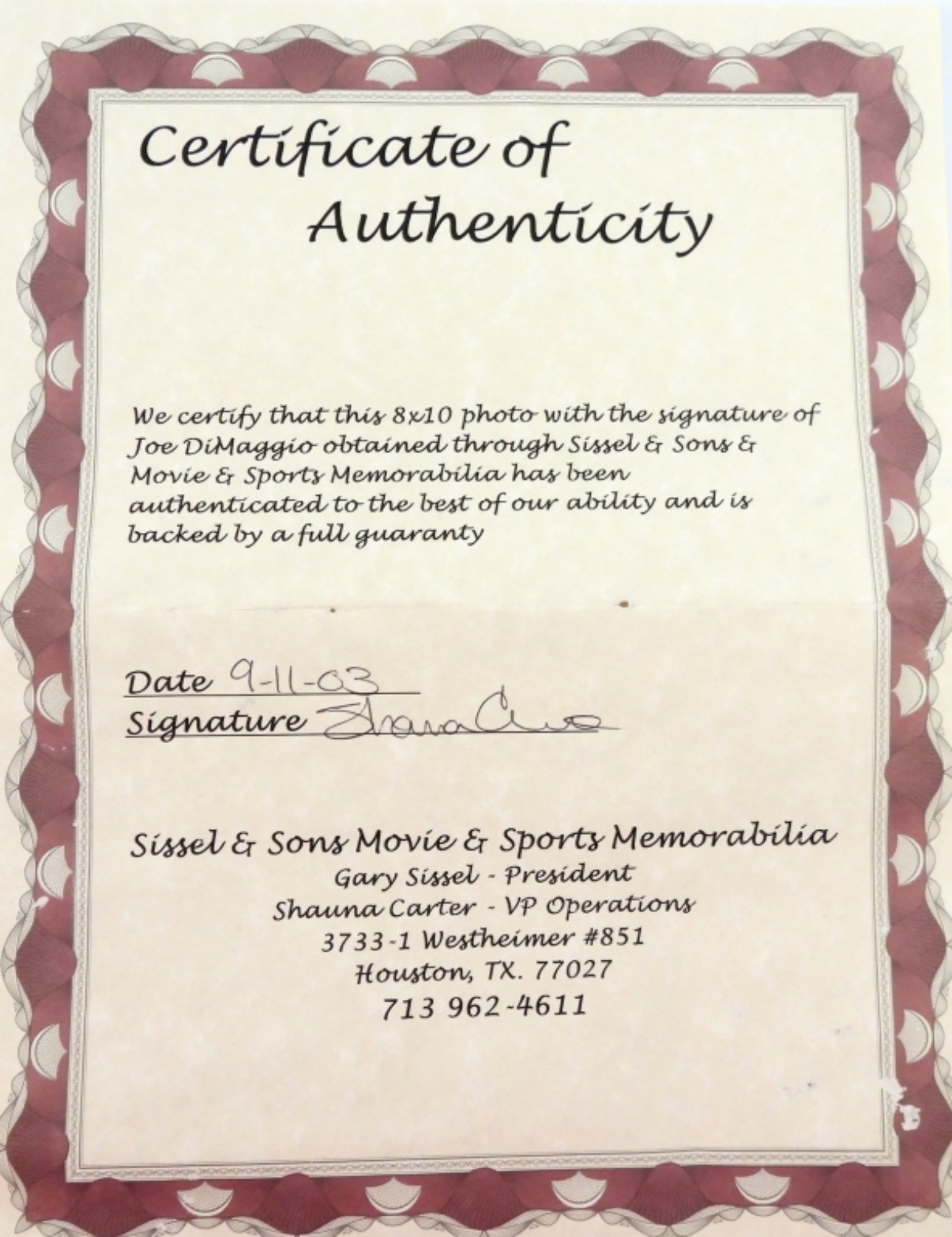 with MATTE only 12×14 – COA by SISSEL & SONS MOVIE & SPORTS