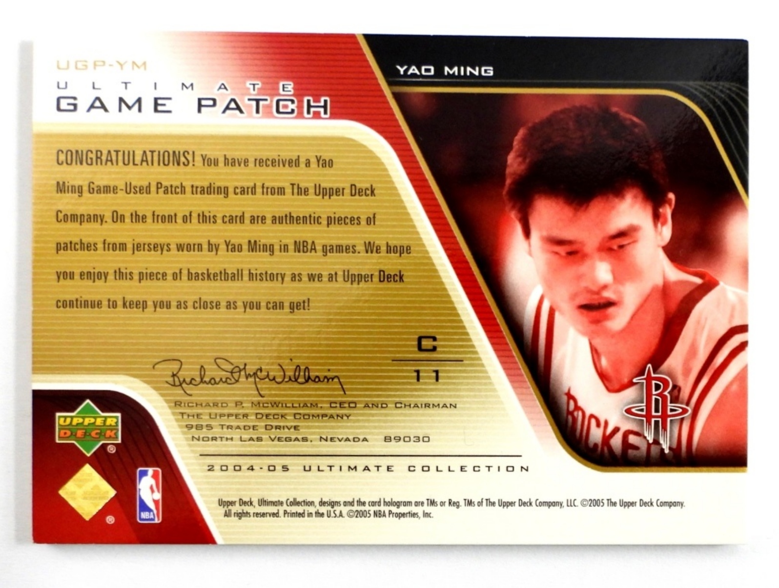 YAO MING UPPER DECK ULTIMATE GAME PATCH LIMITED 17/25. VG/NM