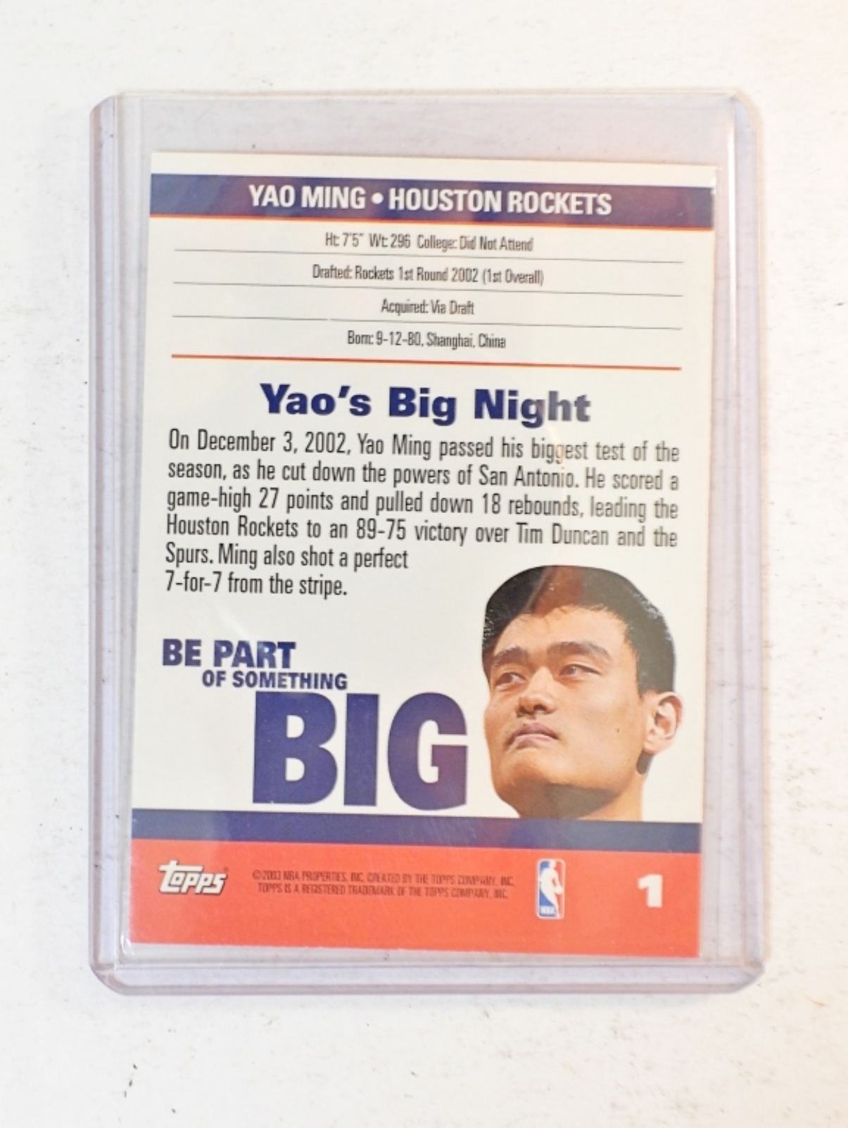 TOPPS “BE PART OF SOMETHING BIG” YAO MING CARD, 2002-03.