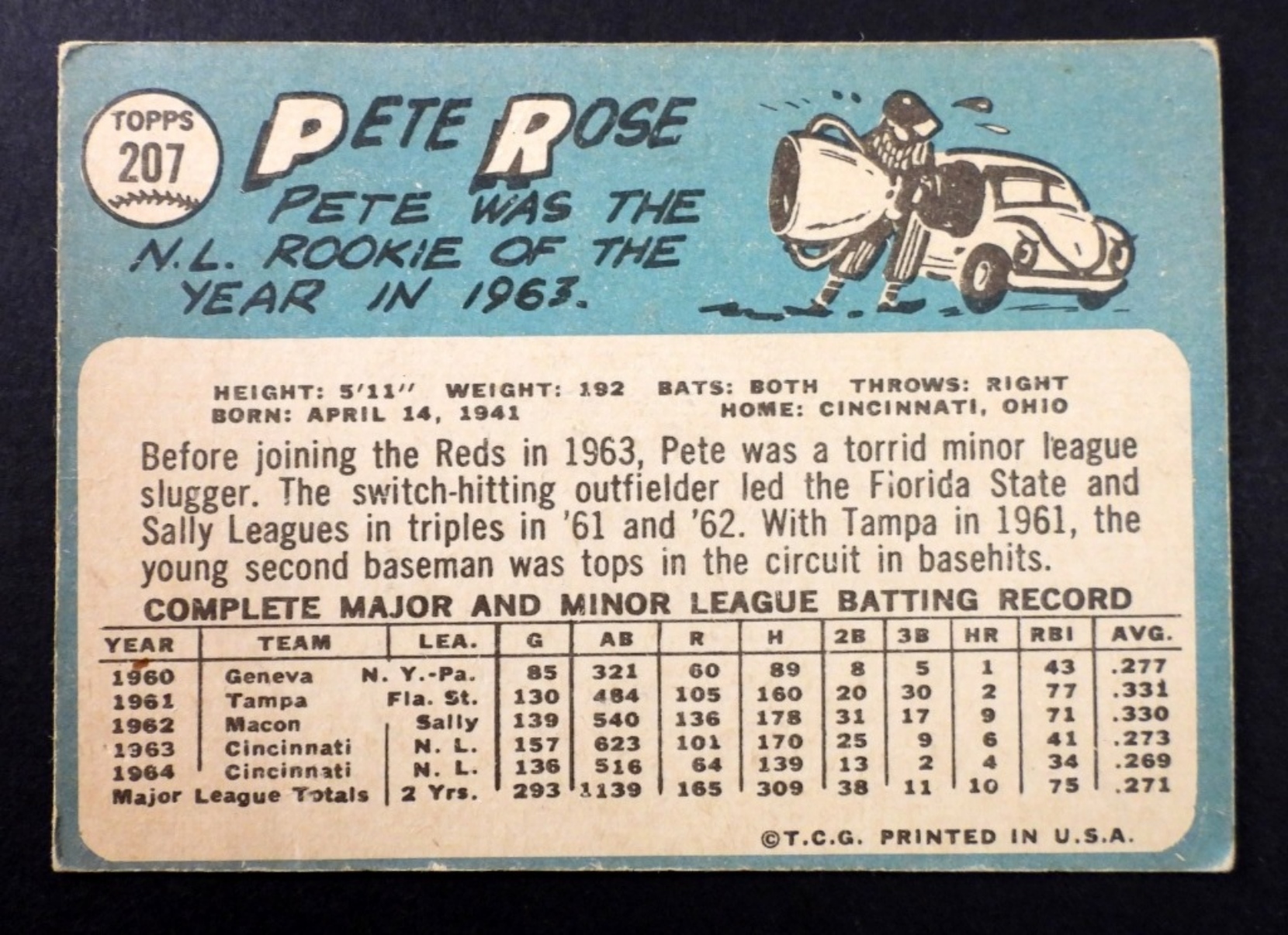1965 TOPPS# 207 PETE ROSE 2ND BASE, REDS VG