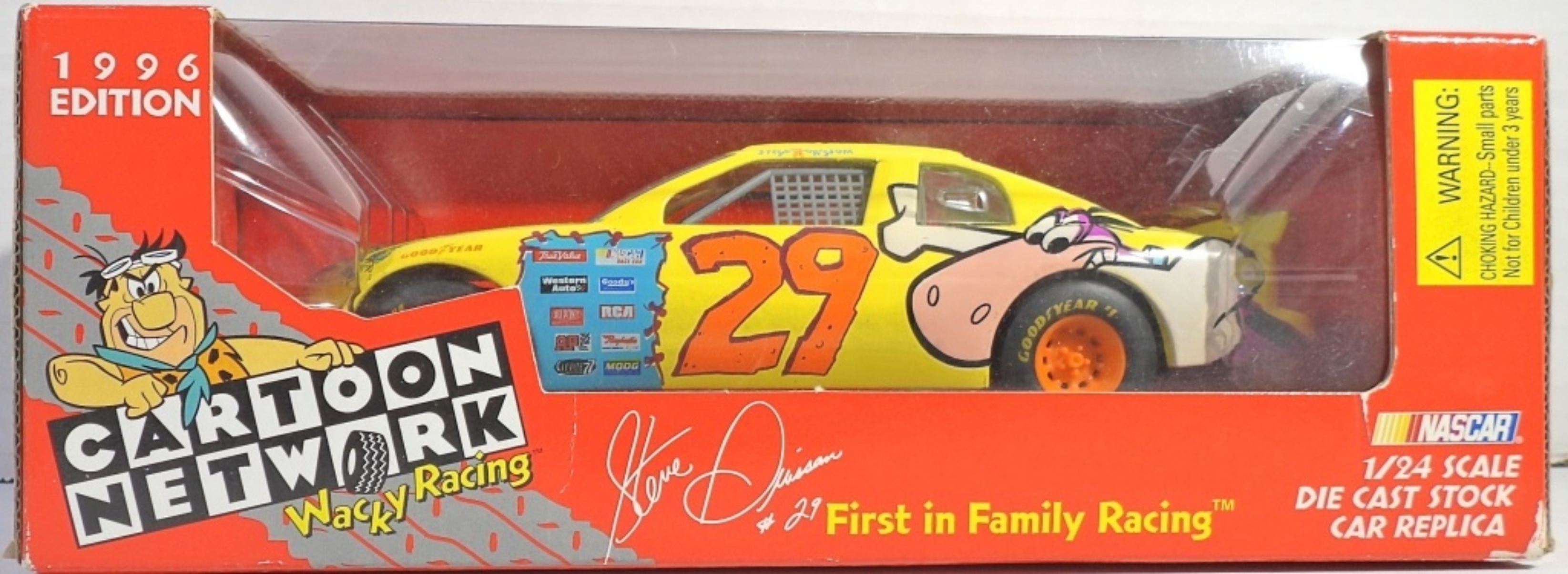 1996 EDITION CARTOON NETWORK WACKY RACING #29 FIRST IN FAMILY RACING 1/24 SCALE DIE CAST STOCK CAR REPLICA IN ORIGINAL BOX