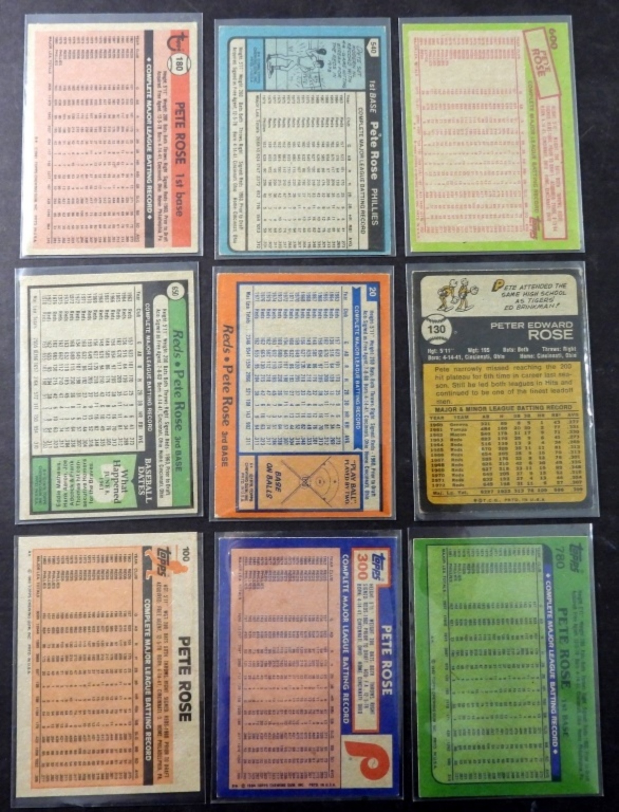 1973-1984 (9) TOPPS PETE ROSE CINCINNATTI REDS/ PHILLIES.#130,#20,#650,#600,#540,#180,#780,#1 00,#300 G-VG/EX