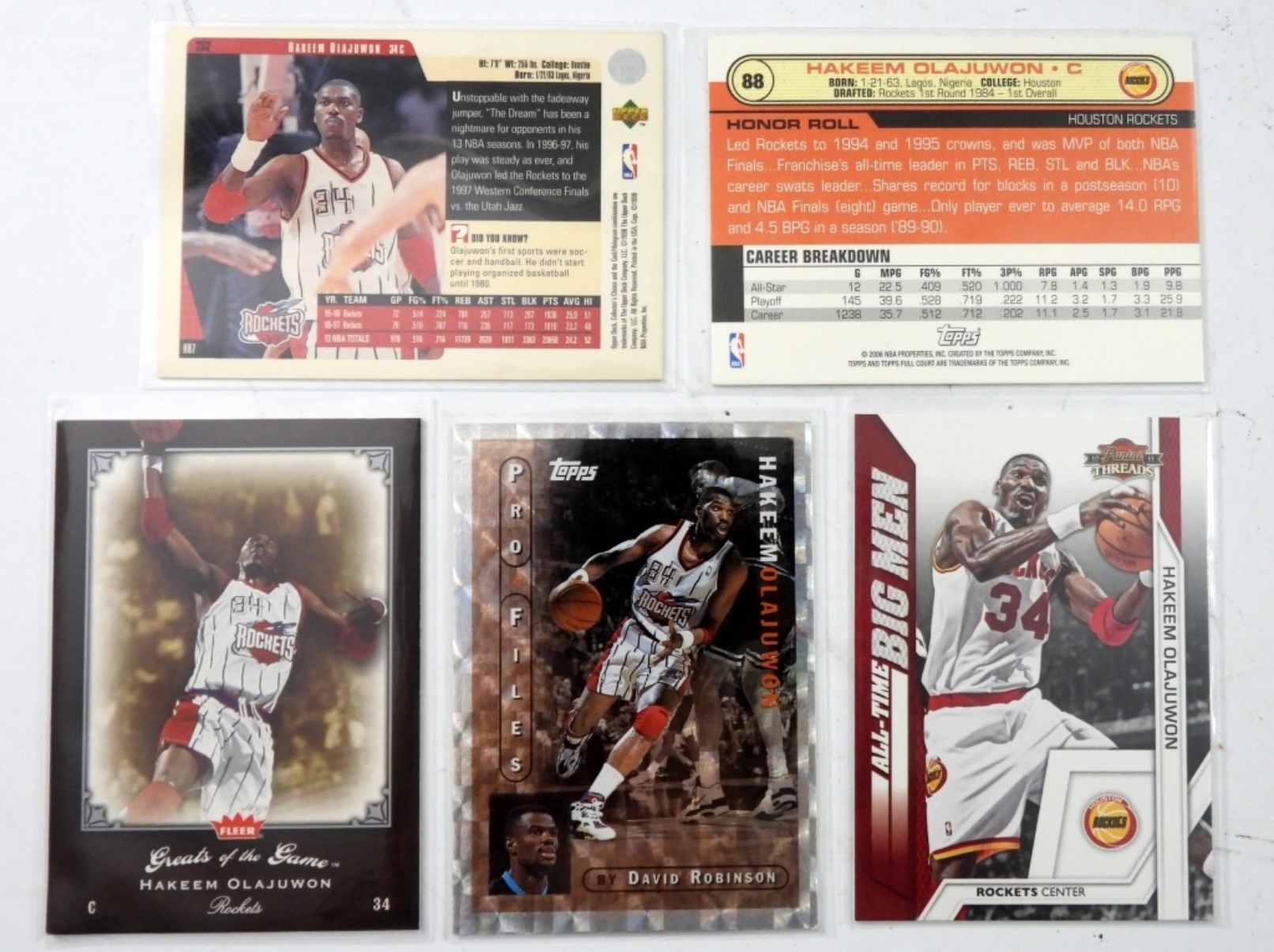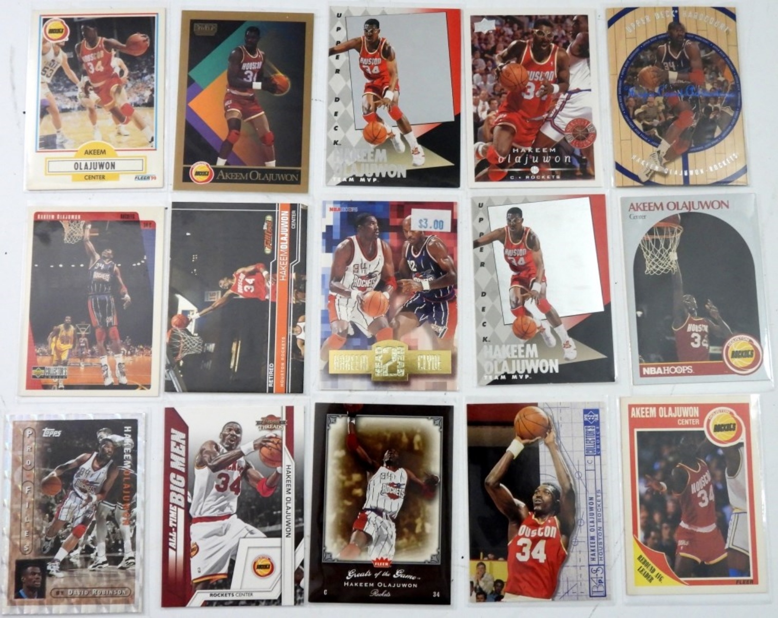 (15) NBA HAKEEM OLKAJUWON PREMIUM BASKETBALL CARDS.VARIOUS YEARS, TOOPS ,UPPER DECK & MORE NICE CONDITION