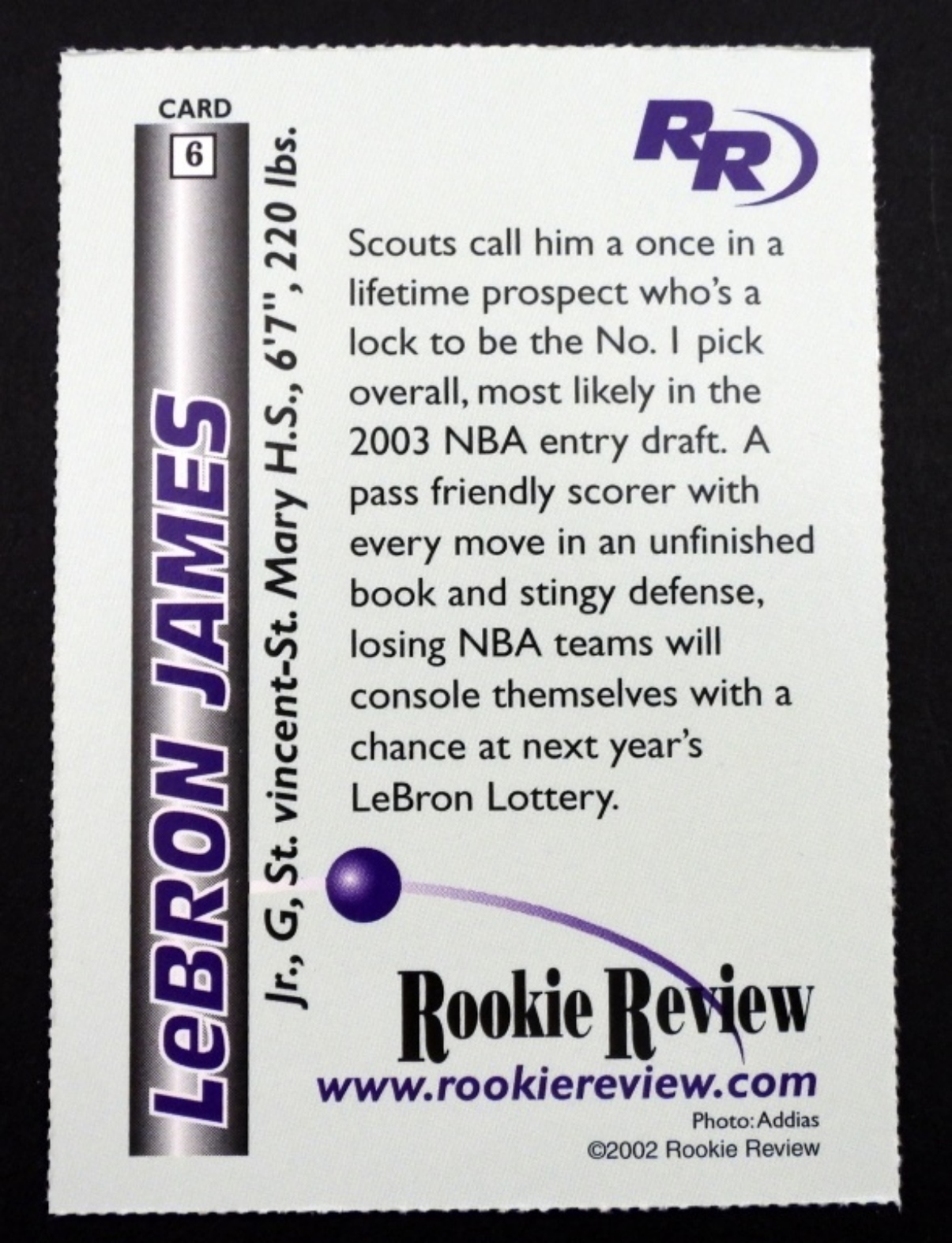 2002 LEBRON JAMES ROOKIE REVIEW HIGH SCHOL CARD RC MINT SHARP