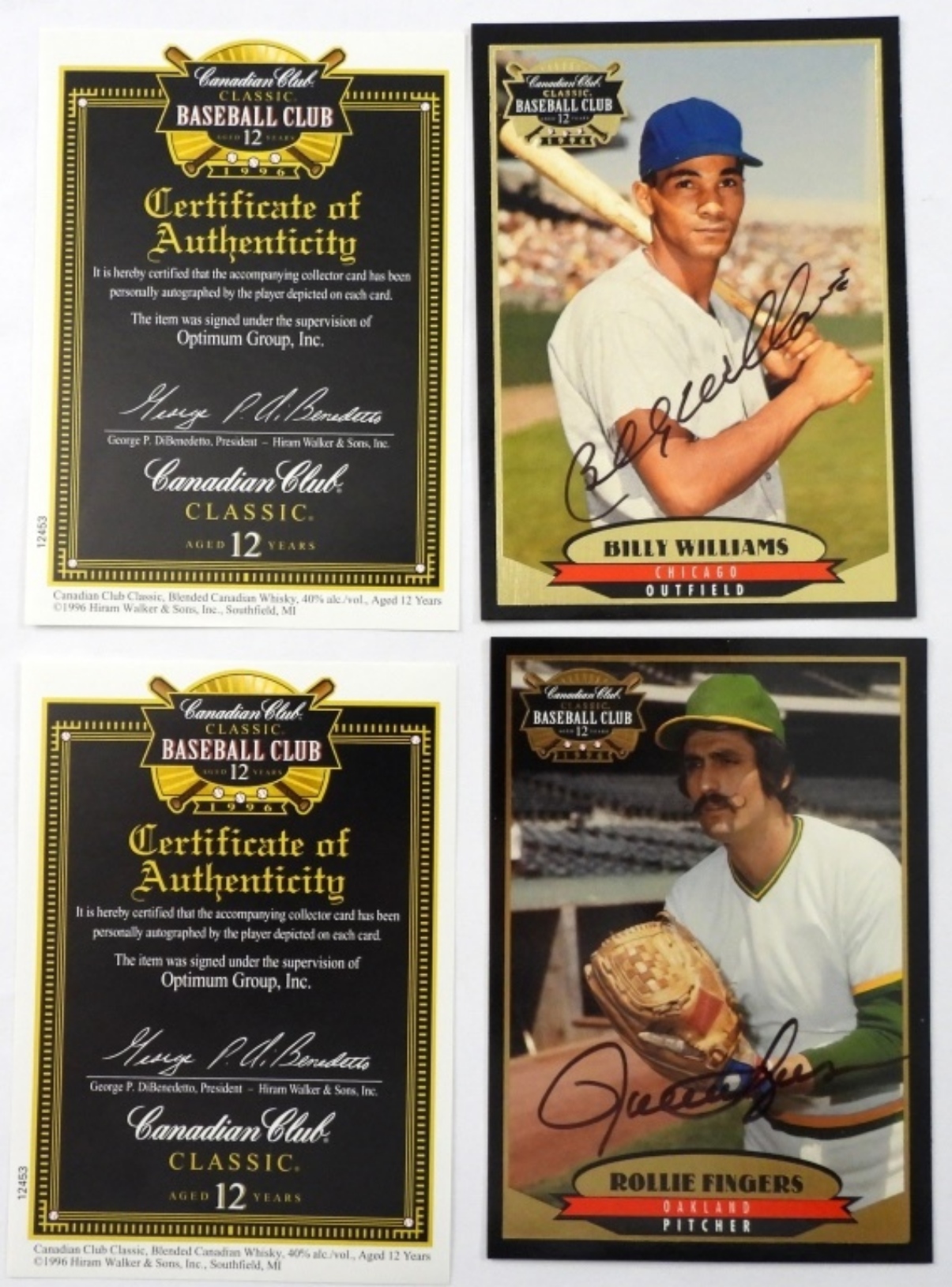 AUTOGRAPHED BILLY WILLIAMS&ROLLIE FINGERS CANADIAN CLUB CARD WITH COA BY CANADIAN CLUB
