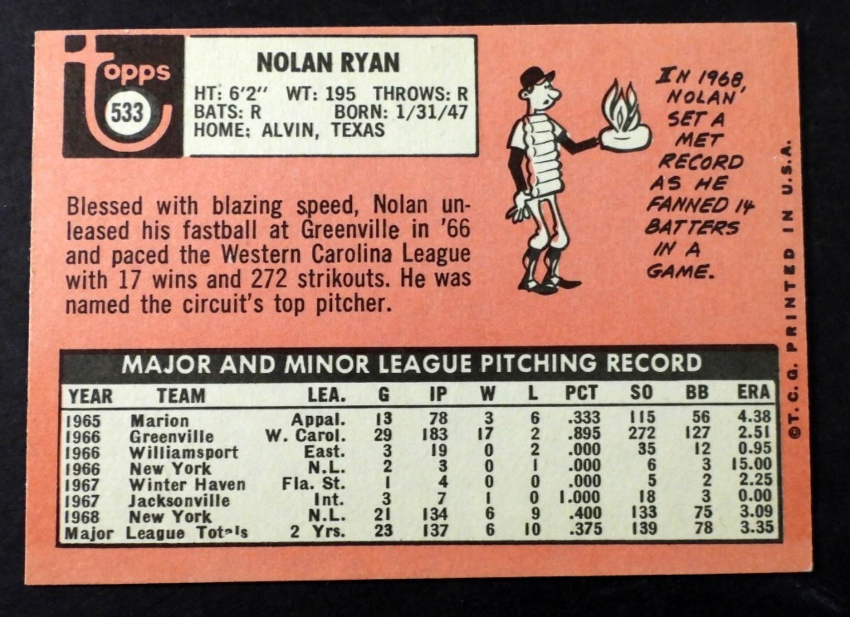 1969 TOPPS # 533 NOLAN RYAN EX/NM 20/80 L-R&T-B