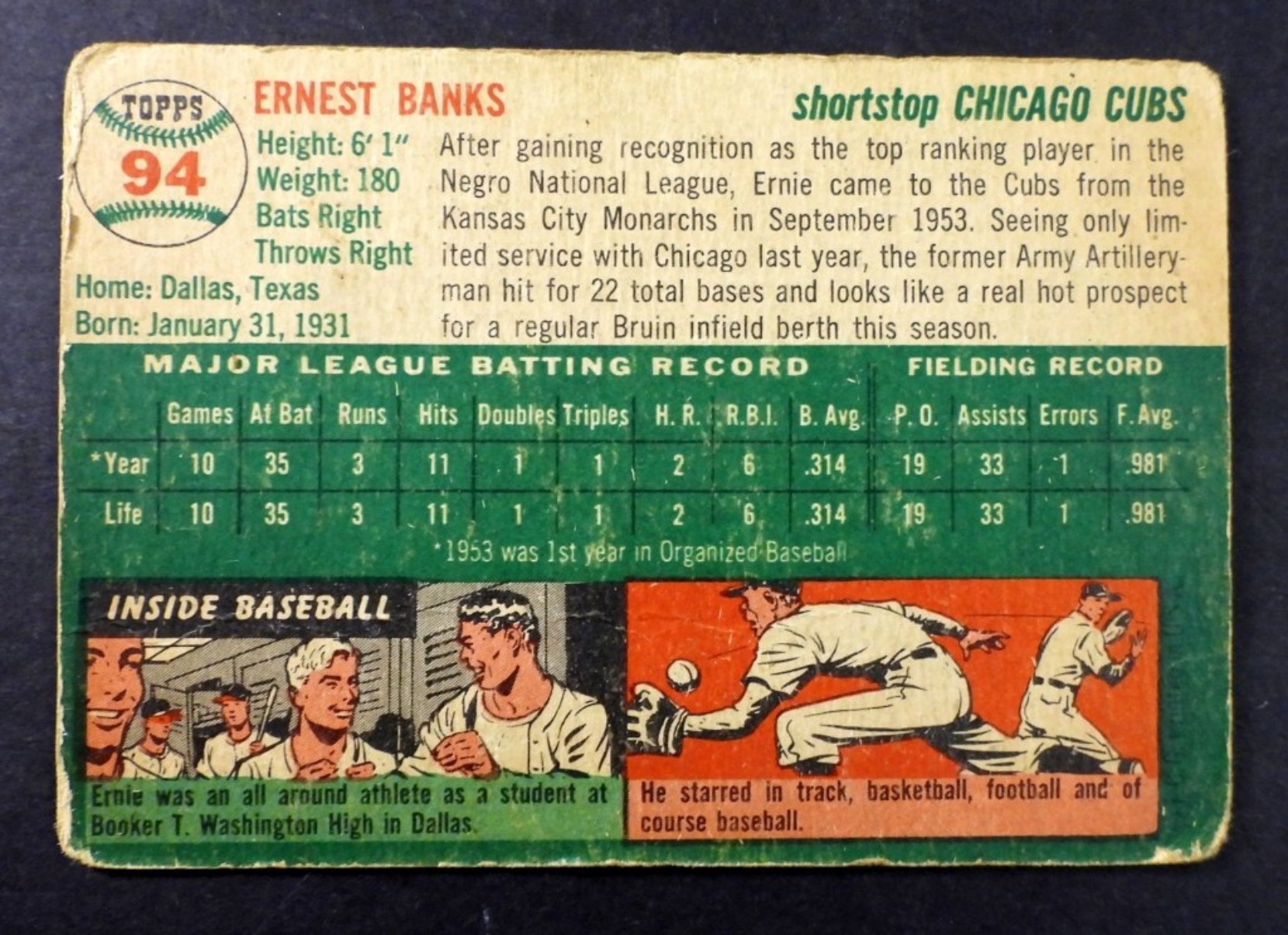 1954 TOPPS#94 ERNIE BANKS ROOKIE CARD Good
