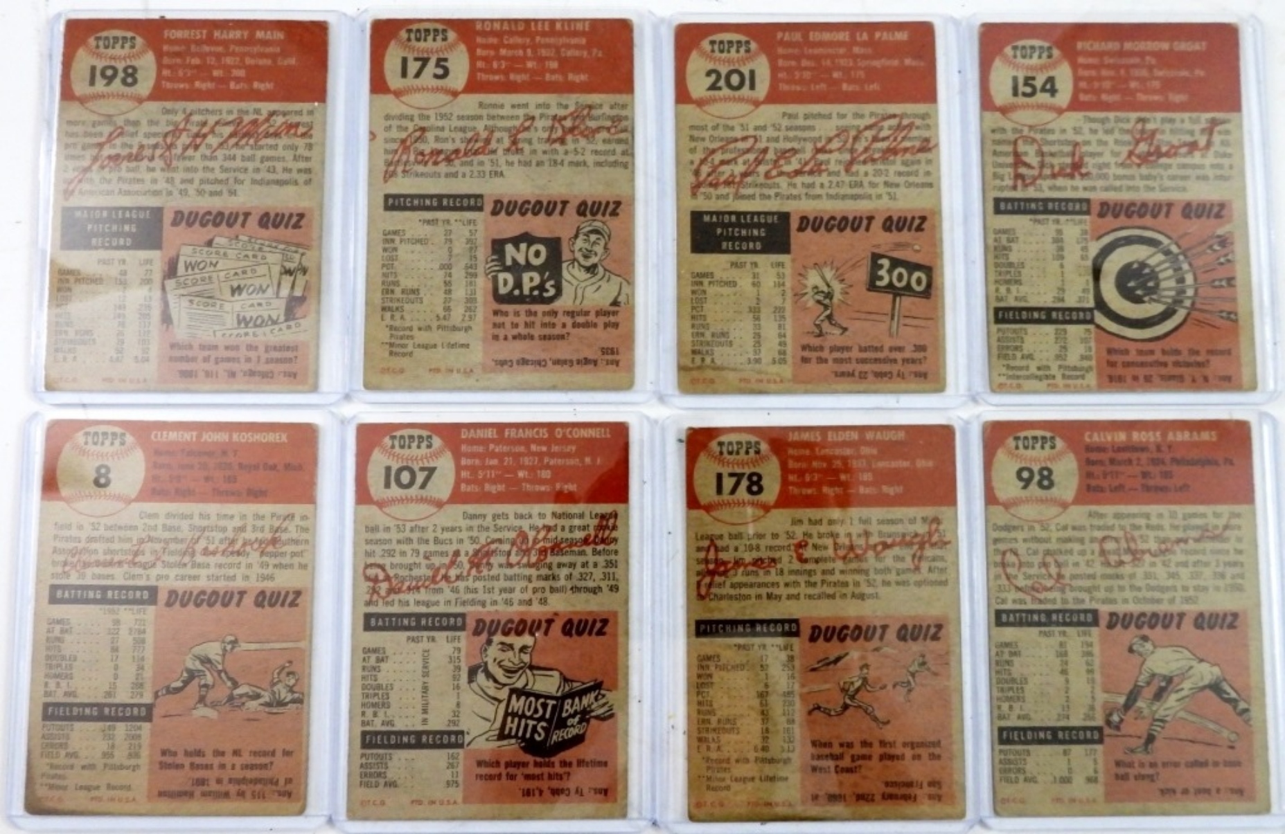 (8) TOPPS 1953 PITTSBURGH PIRATES DICK GROAT#154 & MORE VG