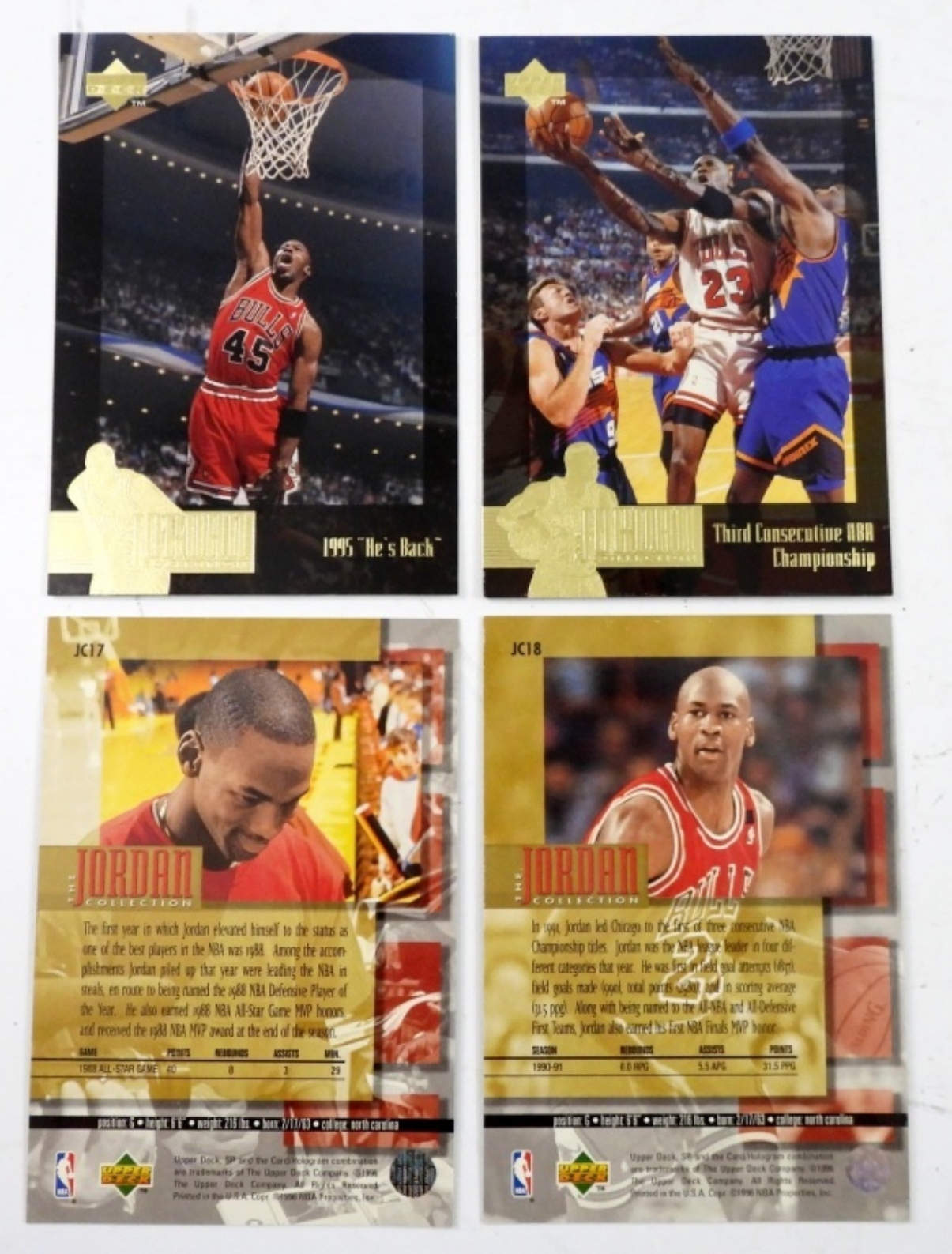 20 1996 UPPER DECK 3X5 JUMBO MICHAEL JORDAN COLLECTABLE GOLD FOIL CARDS