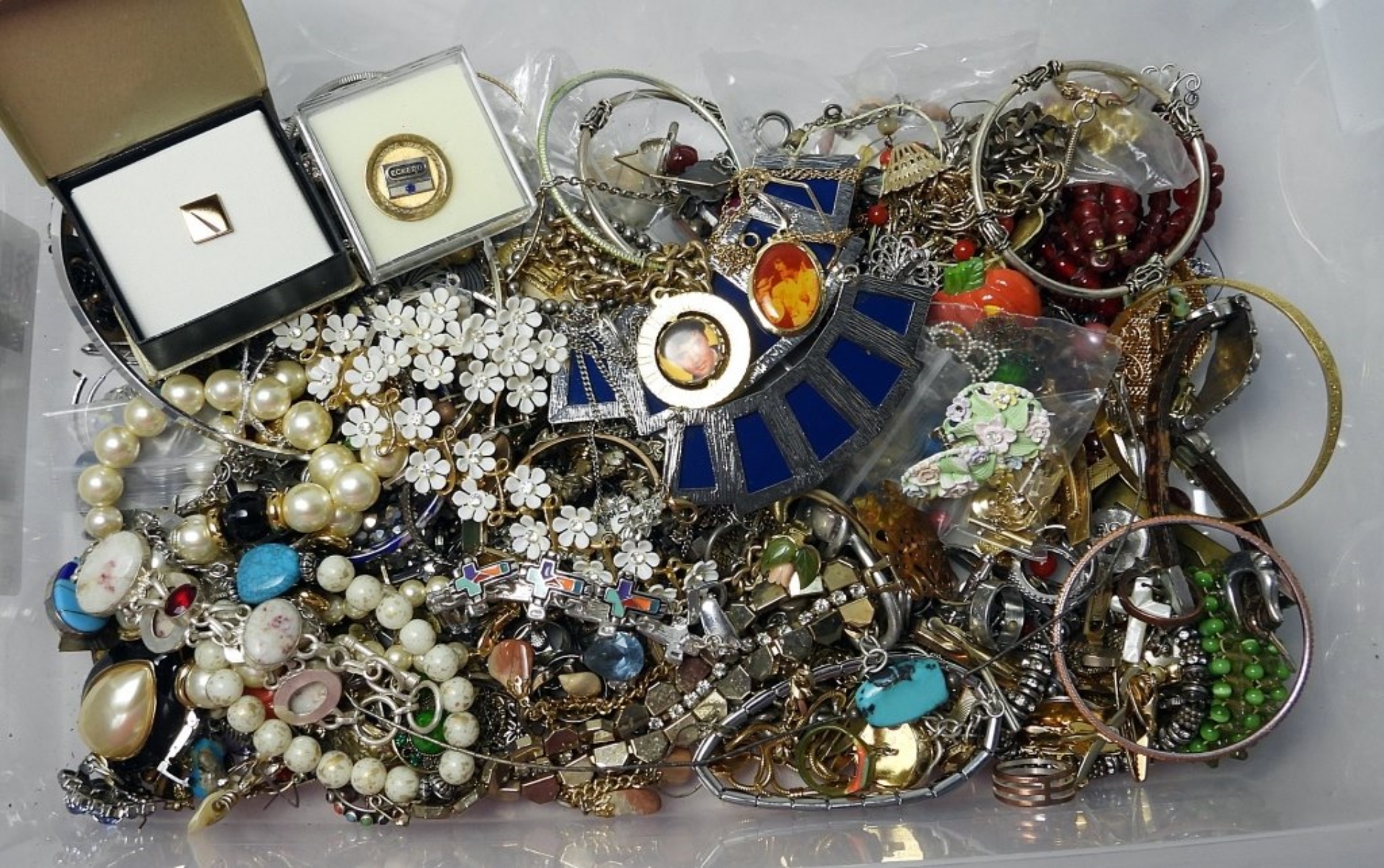 Completely UNSEARCHED and loaded with Name Brand Fashion Jewelry – Trifari, Monet, Coro, Napier, and More – Each lot is bagged individually from this EMENSE Fashion Jewelry Consignment. It is being sold “AS IS” and