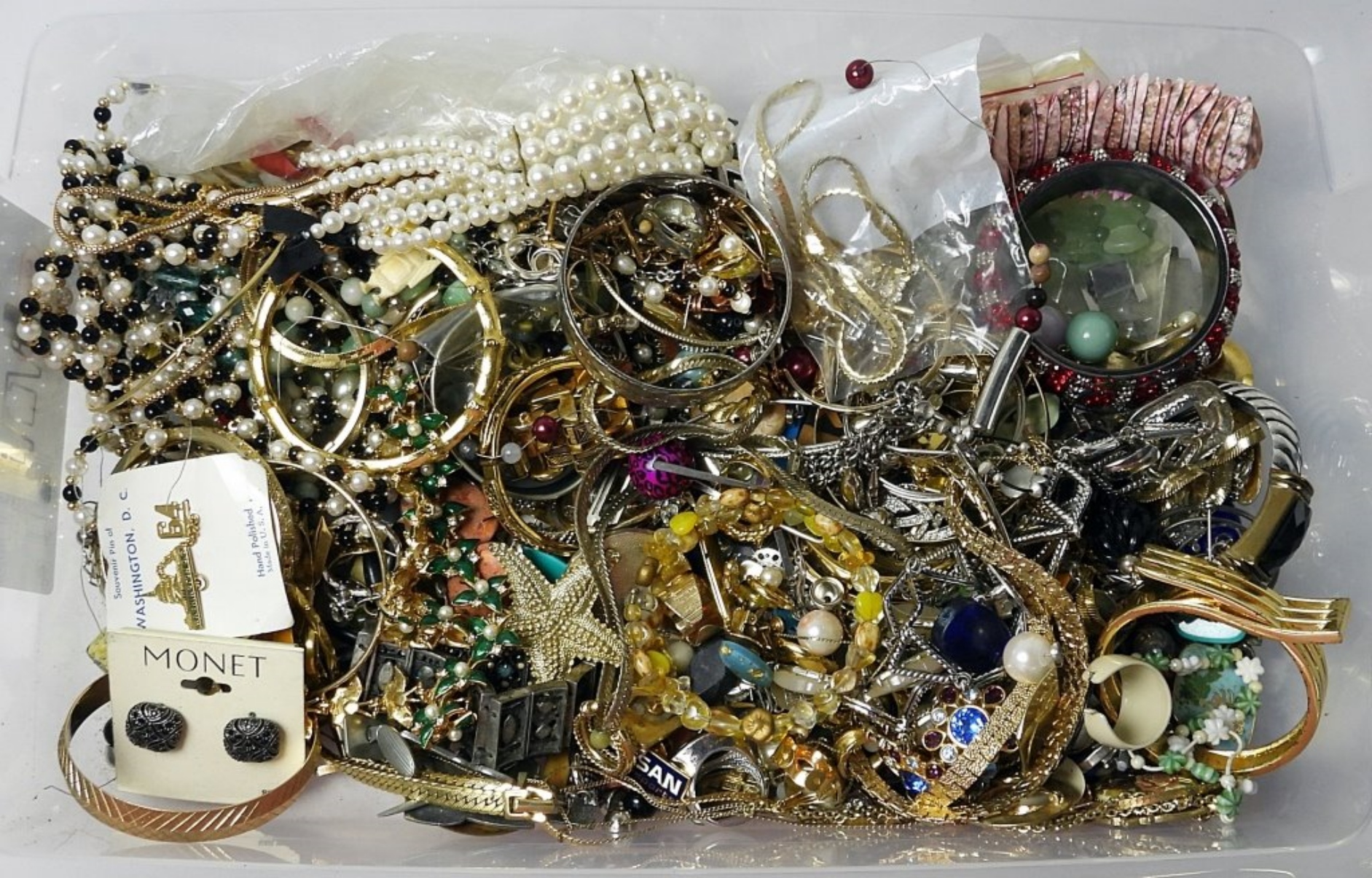 Completely UNSEARCHED and loaded with Name Brand Fashion Jewelry – Trifari, Monet, Coro, Napier, and More – Each lot is bagged individually from this EMENSE Fashion Jewelry Consignment. It is being sold “AS IS” and
