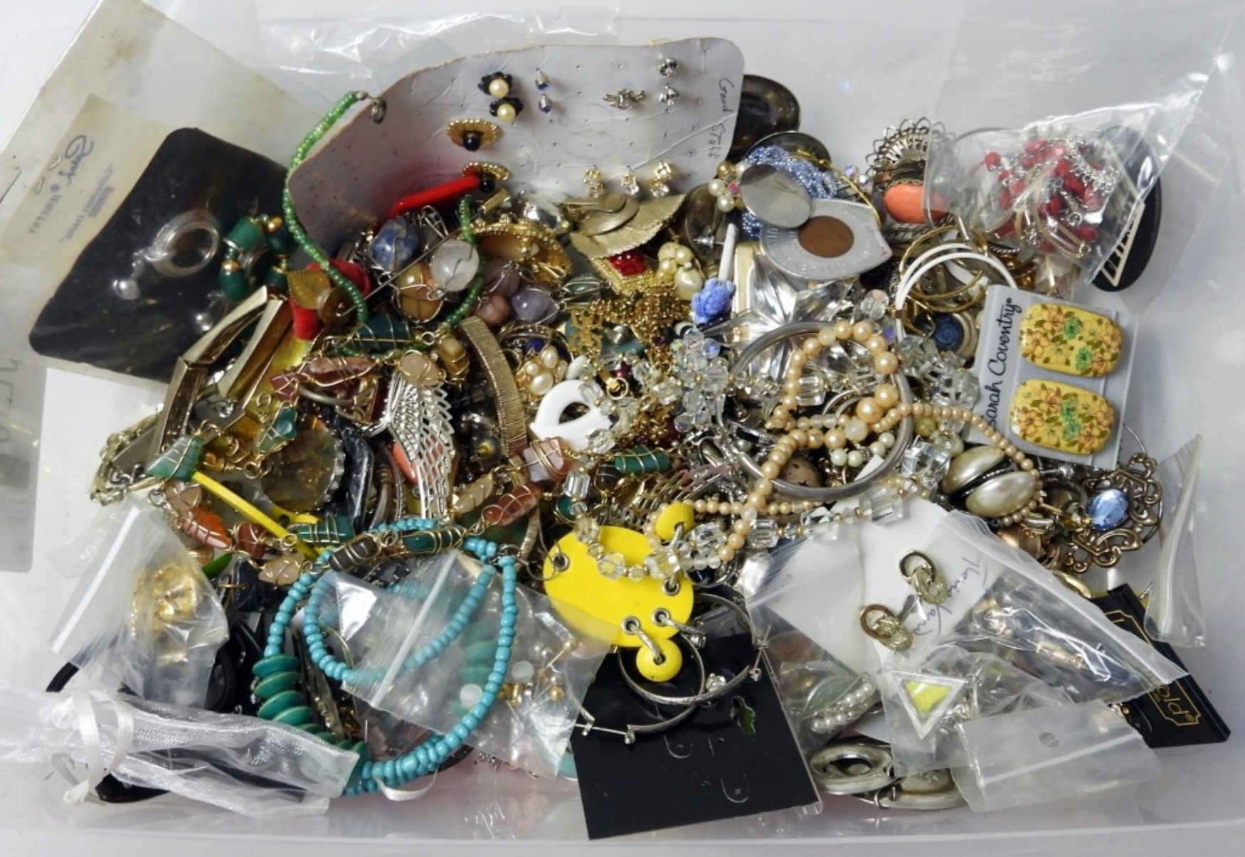 Completely UNSEARCHED and loaded with Name Brand Fashion Jewelry – Trifari, Monet, Coro, Napier, and More – Each lot is bagged individually from this EMENSE Fashion Jewelry Consignment. It is being sold “AS IS” and