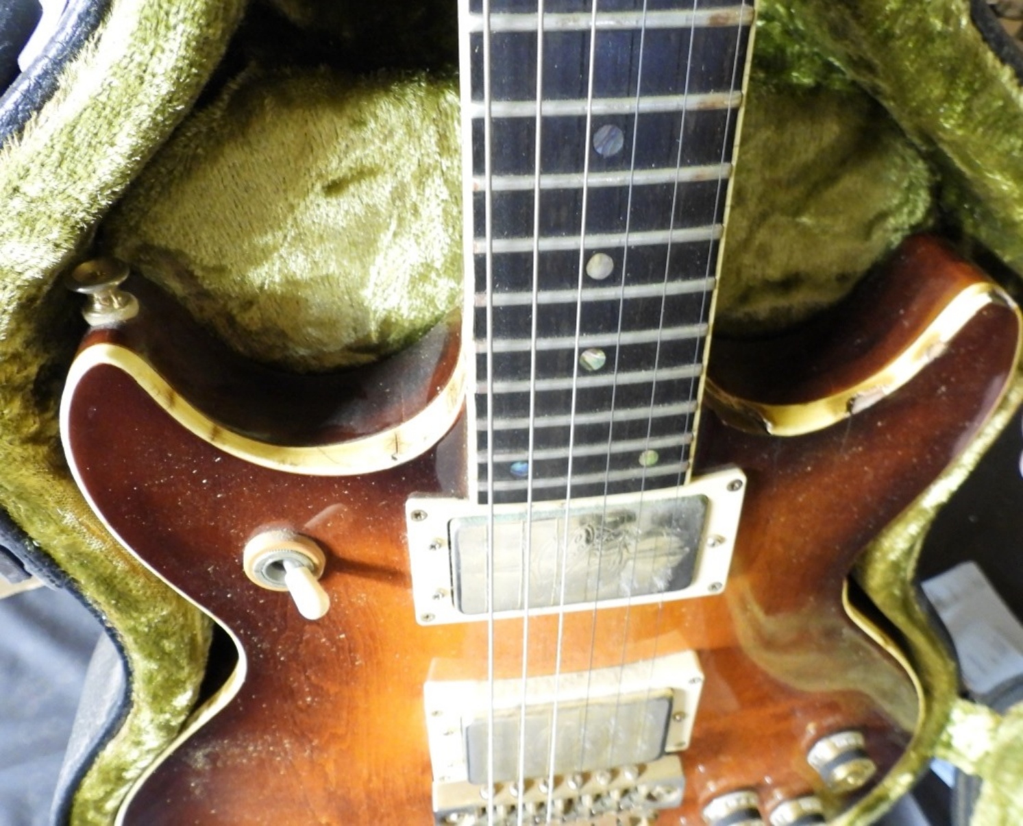 VERY COOL RARE ELCETRIC GUITAR WITH ORIGINAL CASE. BINDING REPAIR NEEDED (109)