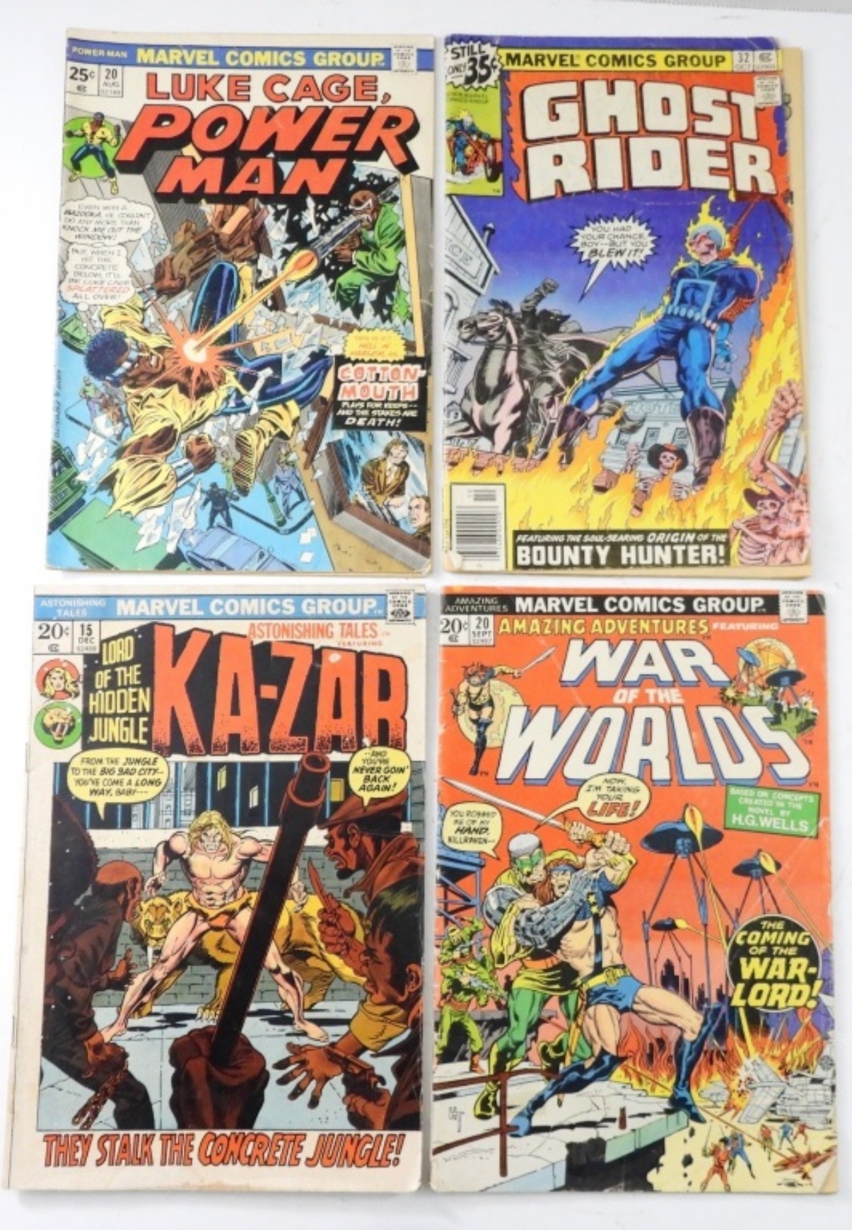 1972 KA-ZAR #15 ,1973 WAR OF THE WORLDS #20 . 1ST NEW LOOK KILLRAVEN, 1974 LUKE CAGE POWER MAN #20 BATTLE WITH COTTON MOUTH, 1978 GHOST RIDER # 32 BOUNTY HUNTER! FAIR – VG