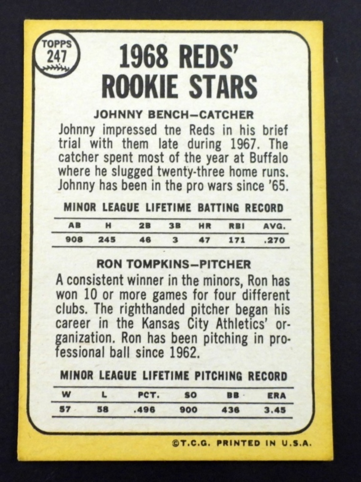 1968 TOPPS #247 JOHNNY BENCH ROOKIE