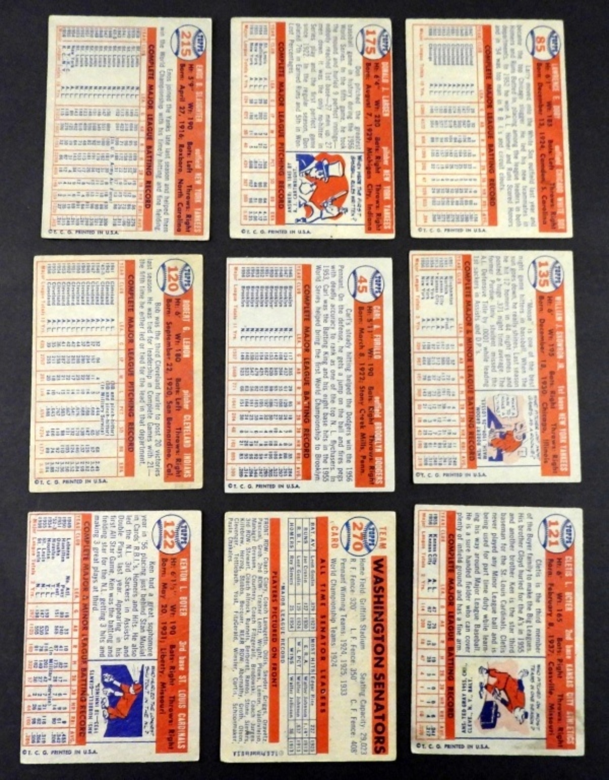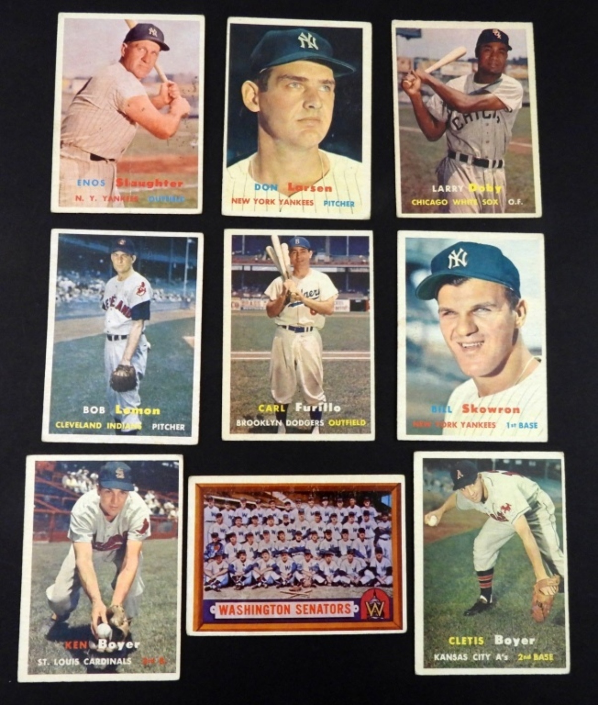 (9) 1957 TOPPS BASEBALL CARDS G/VG #175DON LARSN ,#85 LARRY DOBY & MORE