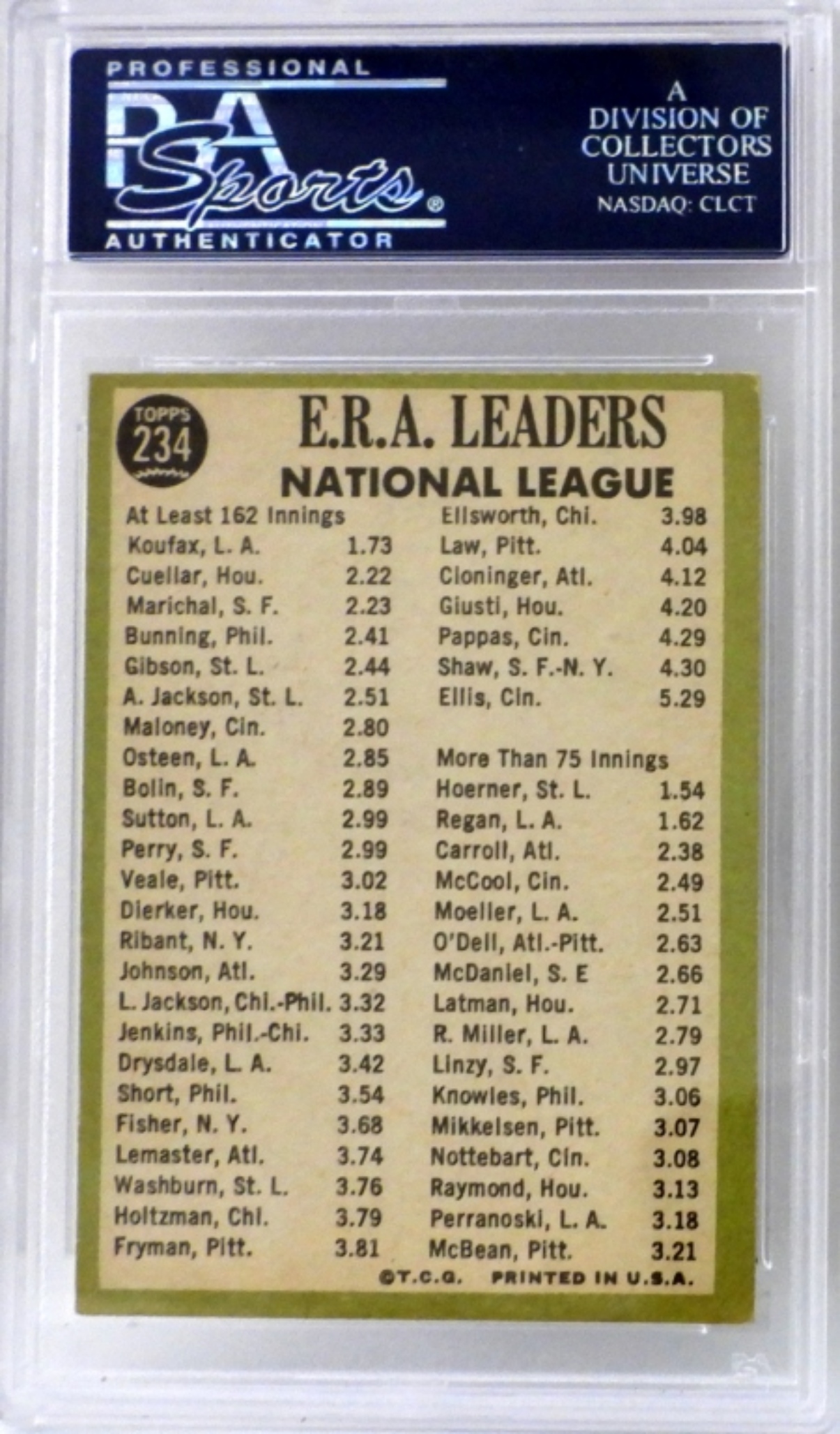 1967 TOPPS NL,ERA LEADERS KOUFAX/CUELLAR/MARICHIAL