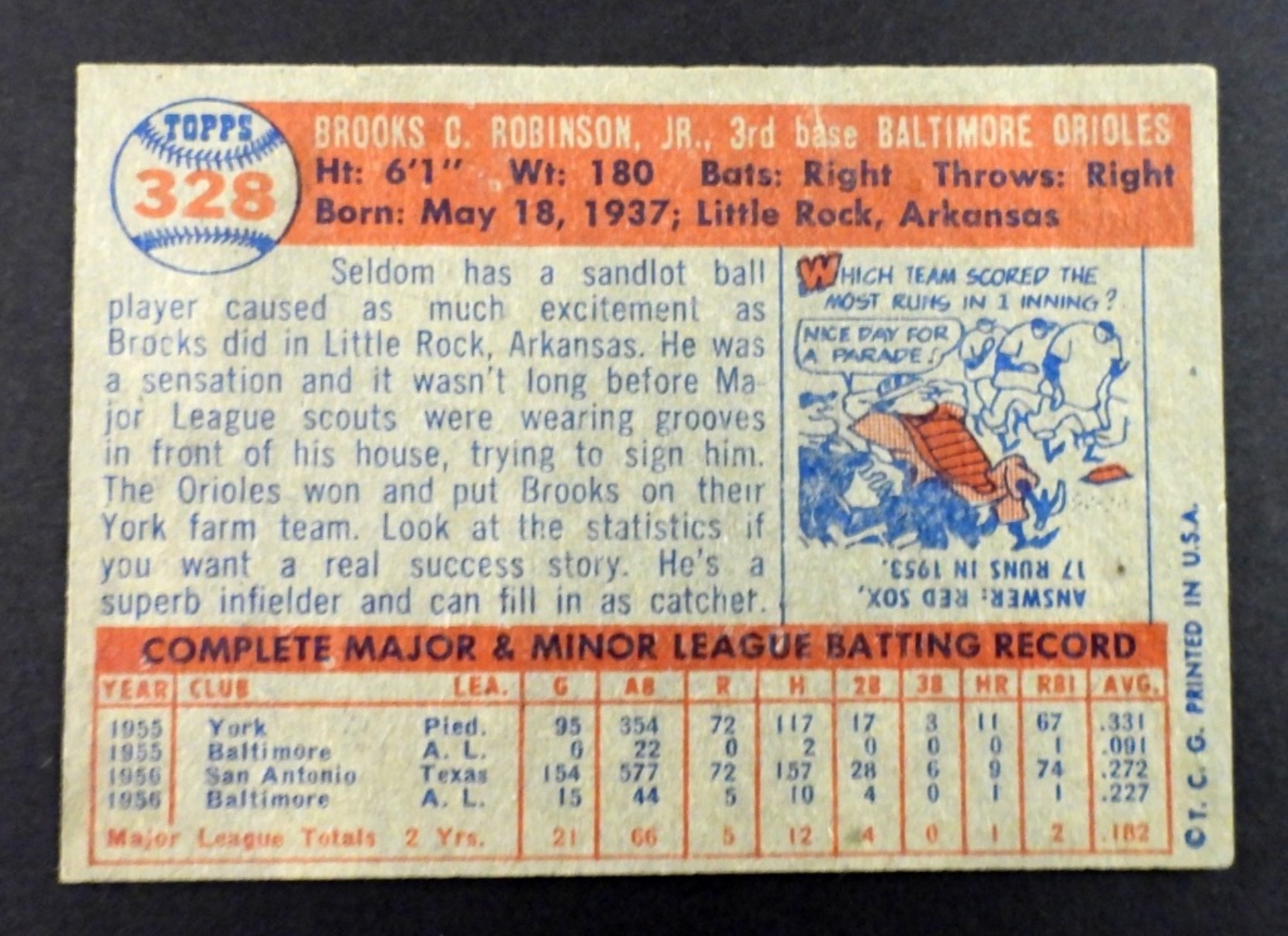1957 TOPPS BROOKS ROBINSON ROOKIE VG/EX