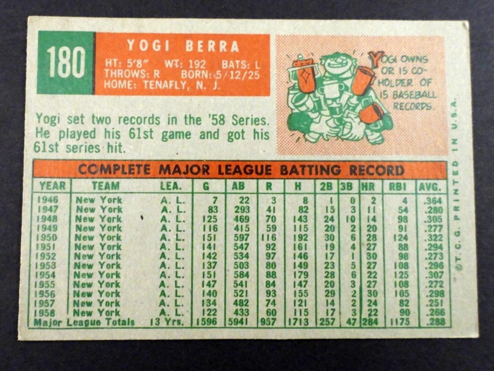 1959 TOPPS# 180 YOGI BERRA VG/EX+