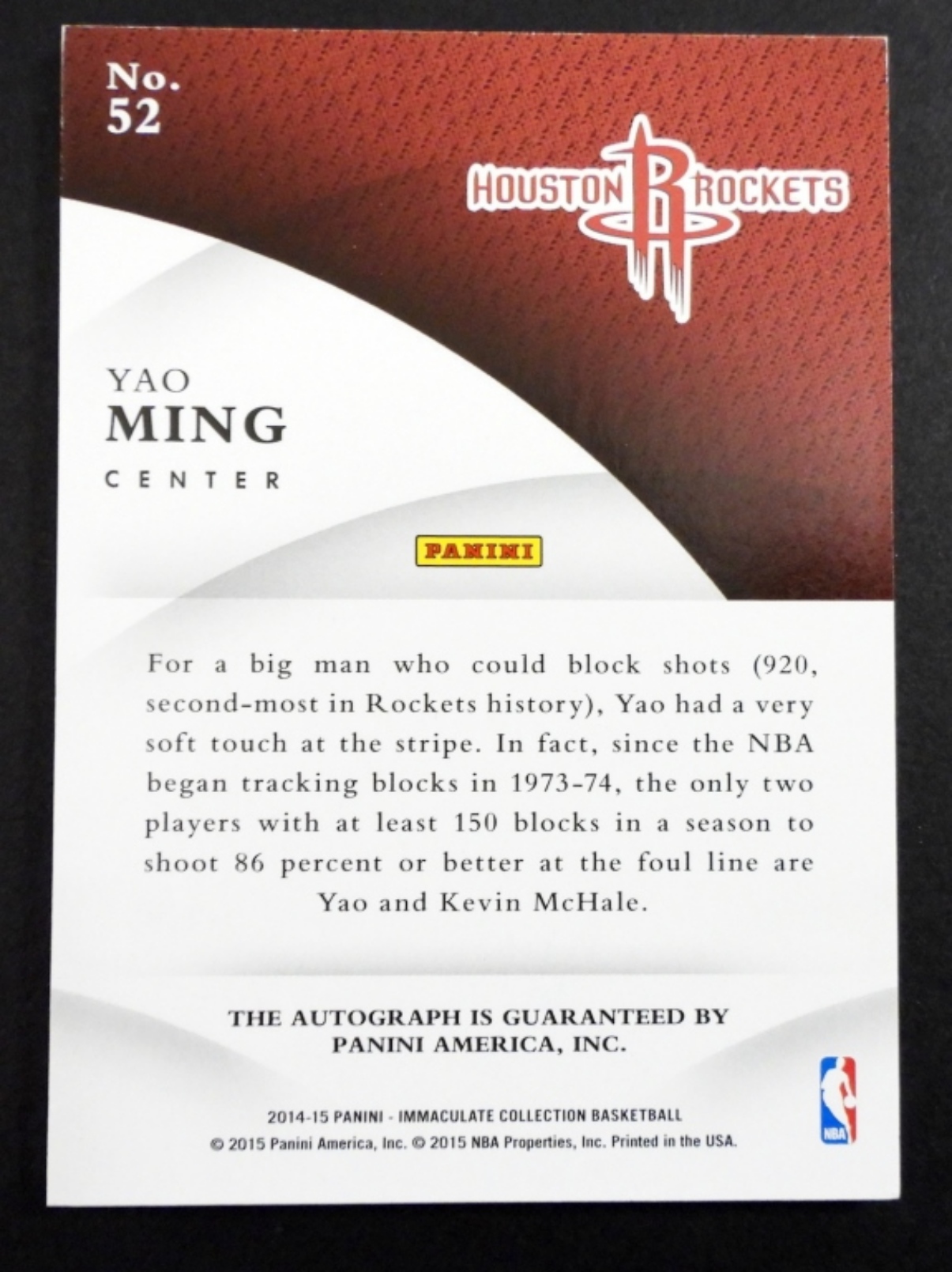 2014-15 PANINI IMMACULATE COLLECTION INK 48/489 ,YAO MING AUTOGRAPHED CARD