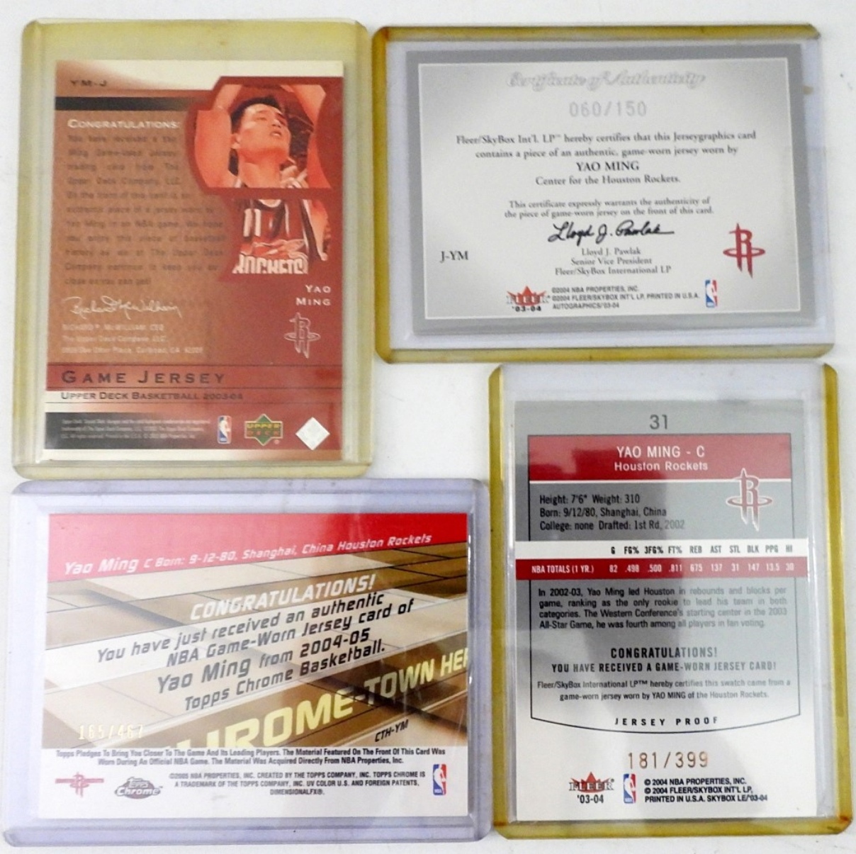 (4) YAO MING BASKETBALL JERSEY CARDS