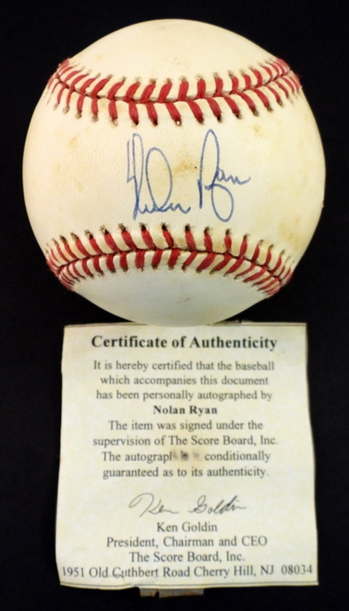 NOLAN RYAN SIGNED RAWLINGS OAL BALLw/COA