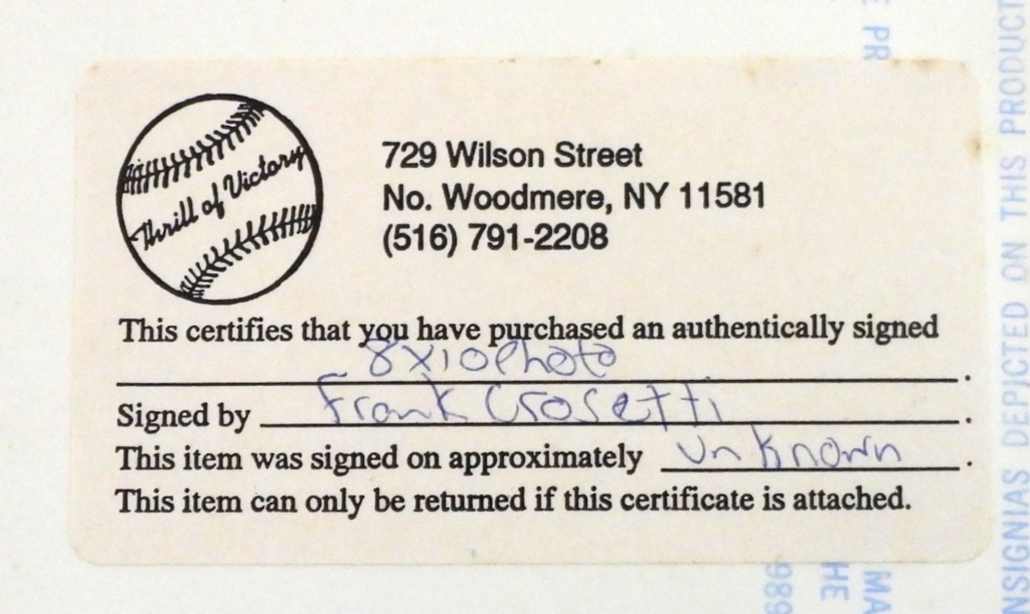 FRANK CROSETTI NY YANKEES SIGNED 8X10 w/COA