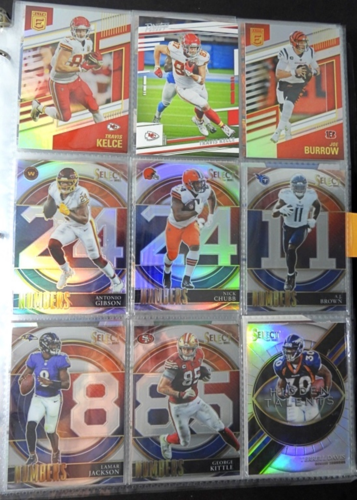 SEVERAL TRAVIS KELCE CARDS plus BASKETBALL & FOOTBALL PREMIUM CARDS – LOADED WITH STARS! APPROX 60 CARDS with EXTRA STORAGE SHEETS in STAR WARS ALBUM