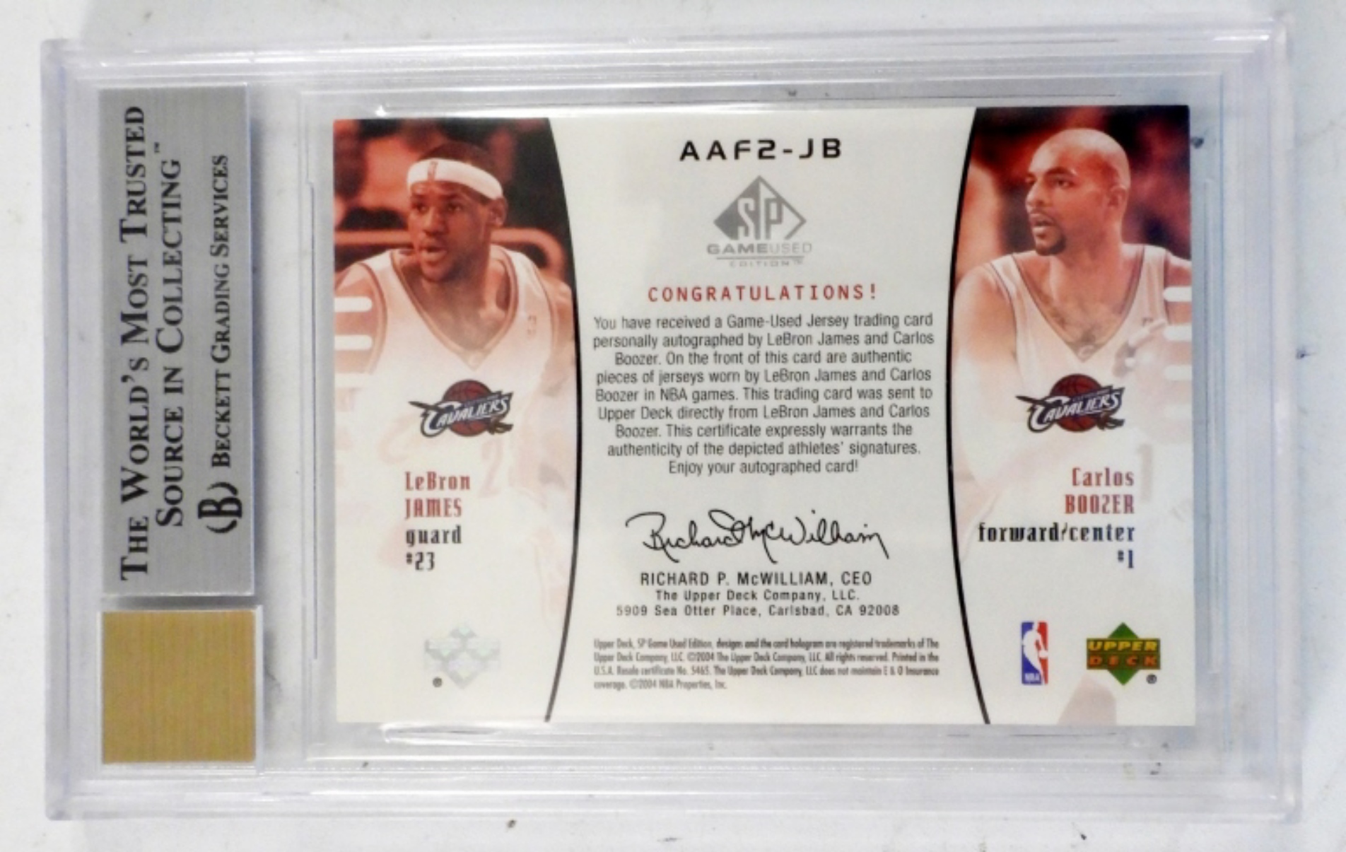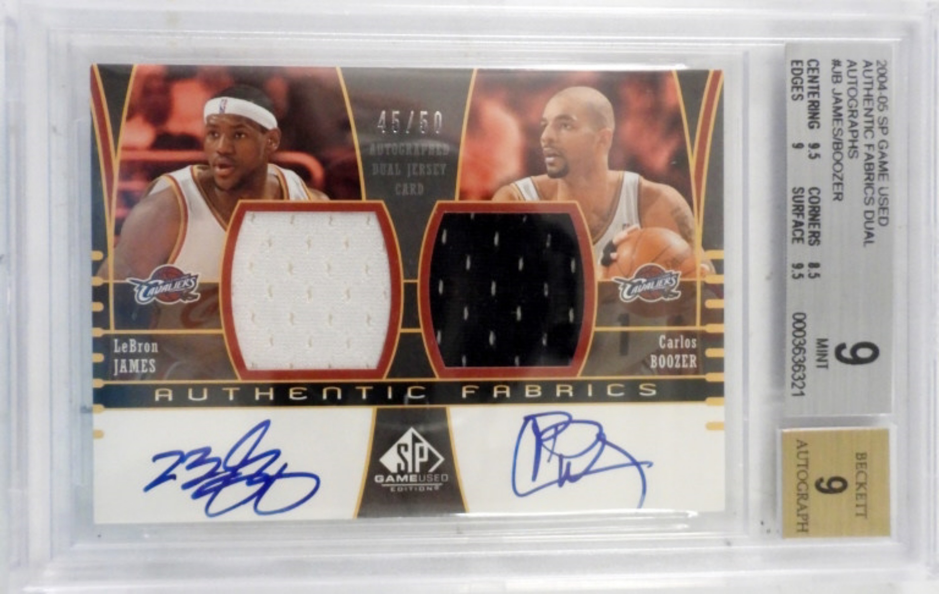 LIMTIED # 45/50 2004-05 SP GAME USED AUTHENTIC FABRICS DUAL AUTOGRAPHS #JB JAMES/BOOZER 9 MINT