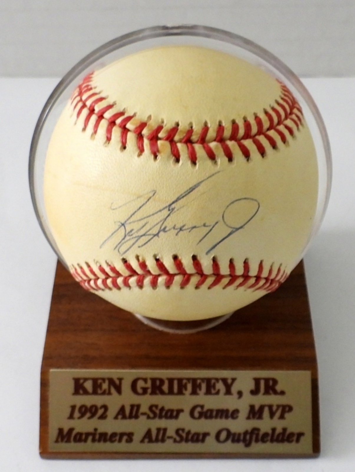 KEN GRIFFEY JR. AUTOGRAPHED BASEBALL. ALL STAR GAME MVP MARINERS ALL STAR OUTFIELDER w/COA