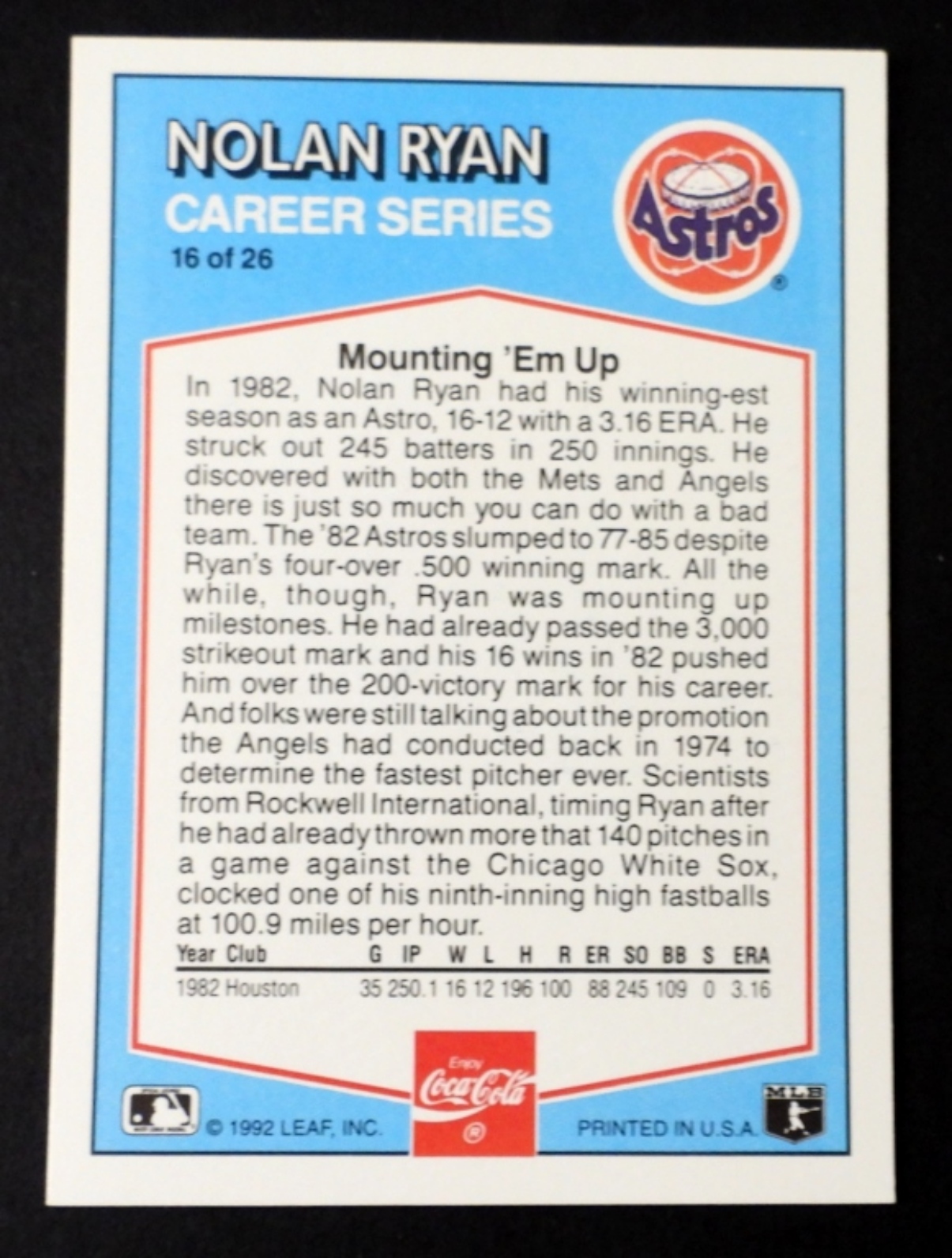 1992 NOLAN RYAN ASTRO AUTOGRAPH DONRUSS COCA-COLA CARD